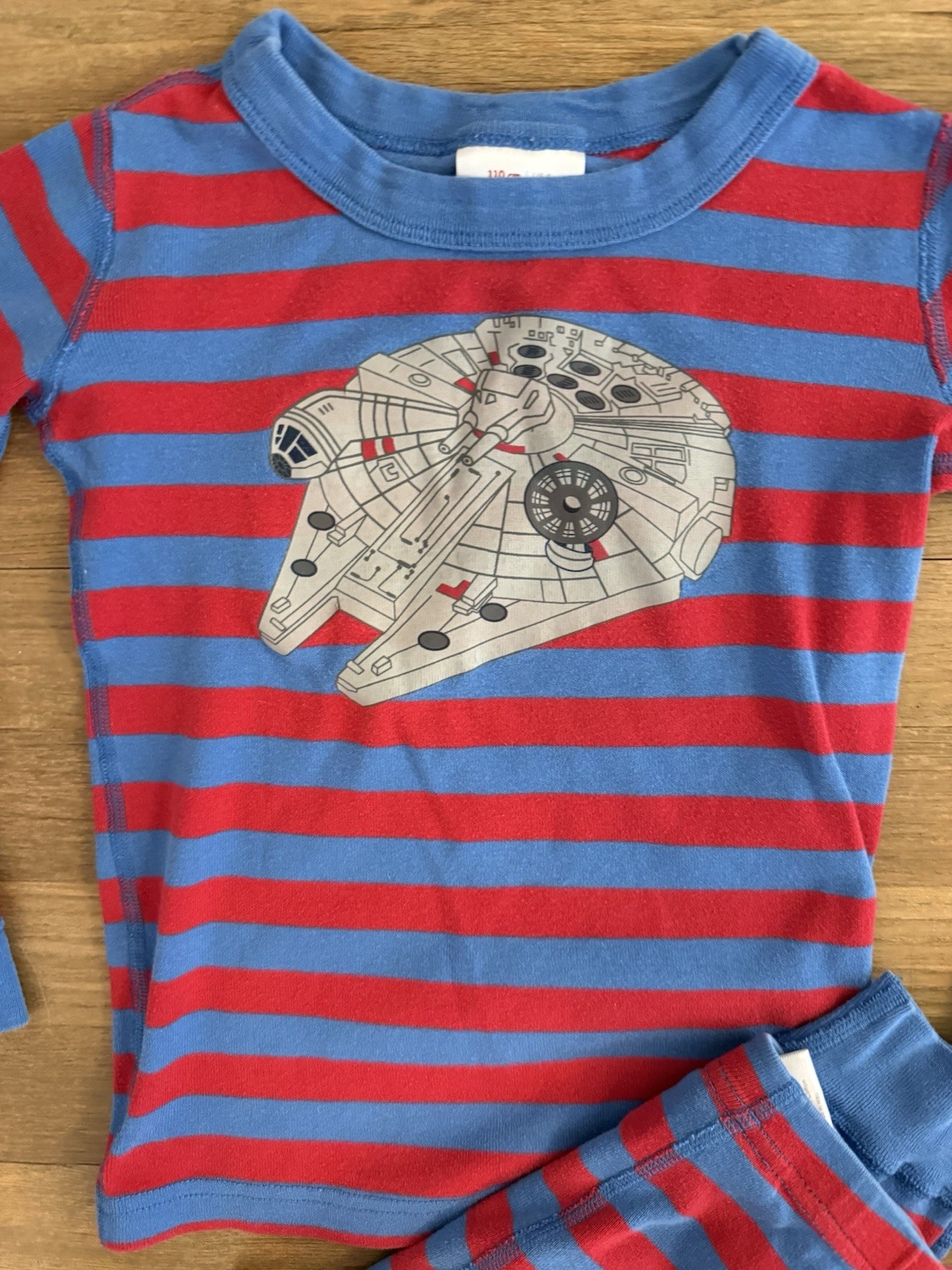 как выглядит Hanna Andersson Boys Size 5 / 110 Star Wars Striped Pajamas Millennium Falcon фото
