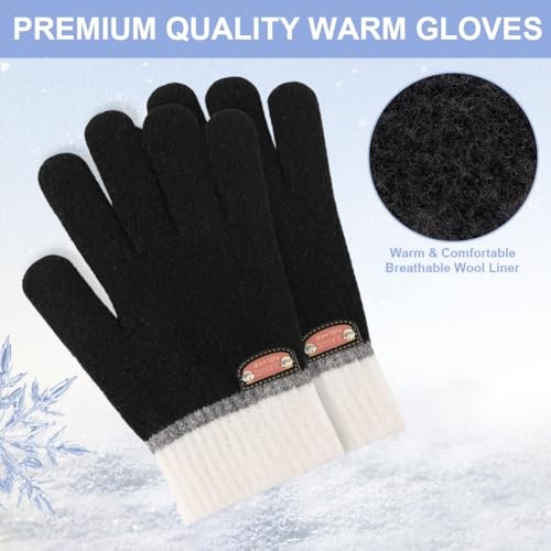 6 Pairs Kids Winter Gloves Full-Finger Knitted Wool Fleece-Lined