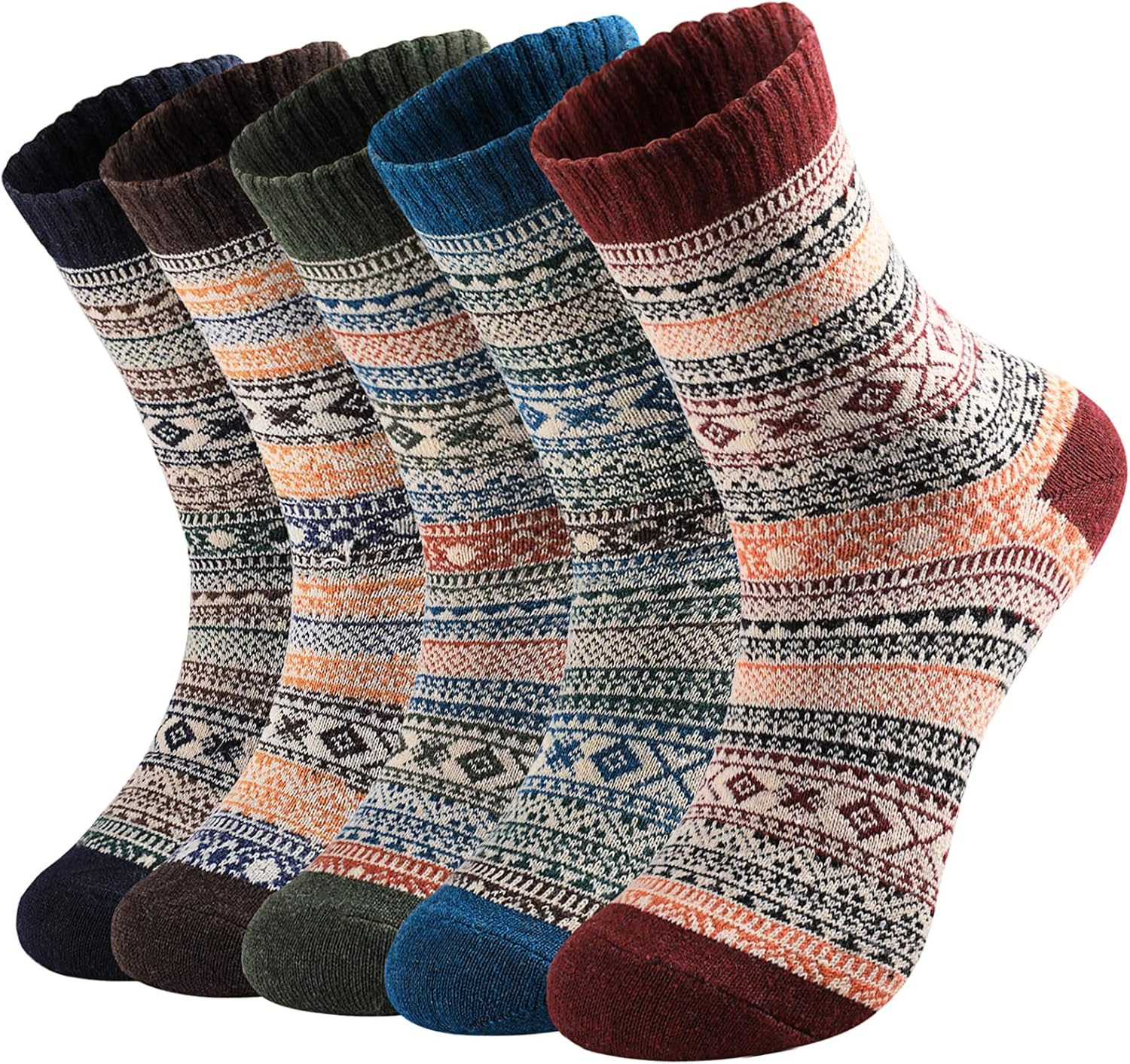 Pleneal Wool Socks for Women - Womens Wool One Size 5 Pairs Nordic Style, 6-10