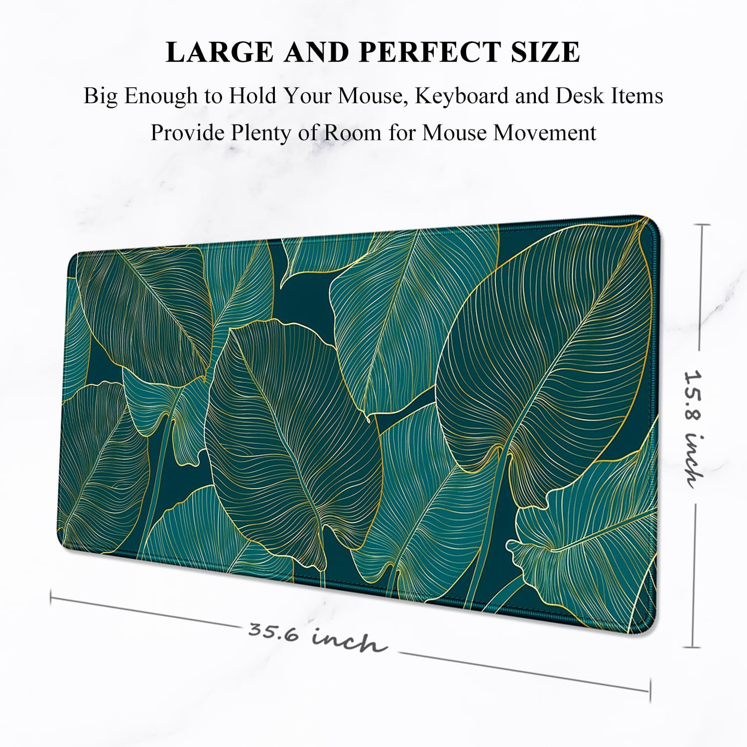 Desk Mat, Ultra Large Mouse Pad, XXL Gaming Mousepad, Green Tropical Leaves