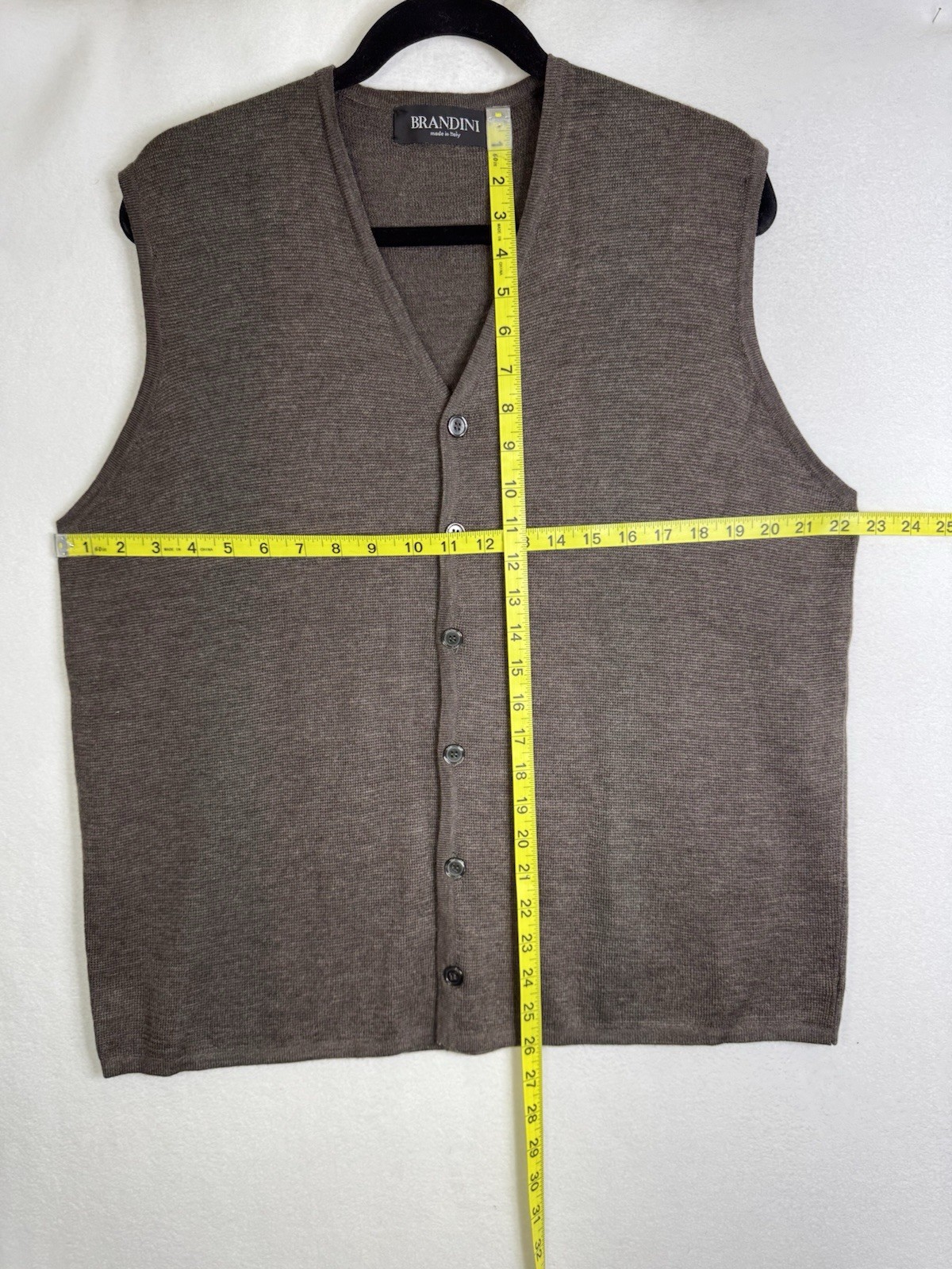 Brandini Merino Wool Sweater Vest Men's Size L Chocolate Brown Button Italian
