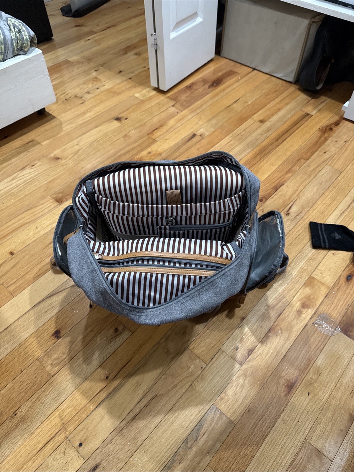 как выглядит Parker Baby Co. Birch Bag Diaper Backpack in gray canvas with vegan leather фото