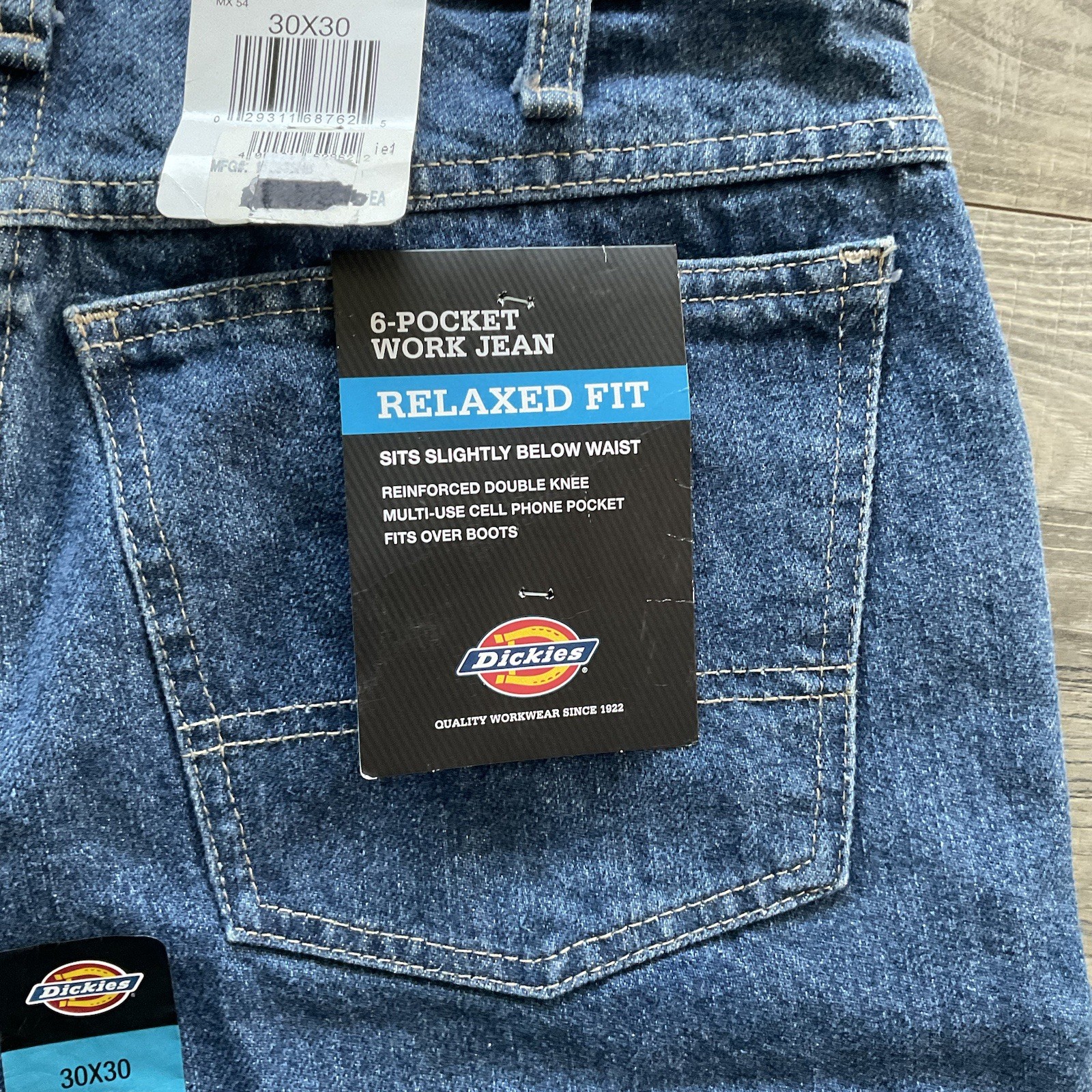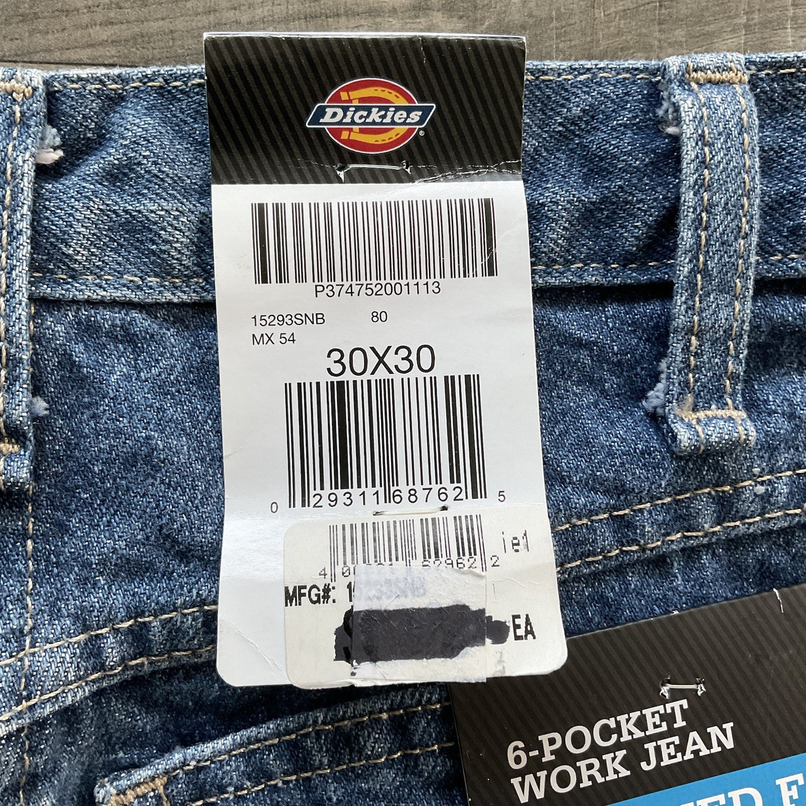 NWT Dickies Relaxed Fit Double Knee Work Jeans Mens 30x30 Blue 6 Pocket 15293SNB