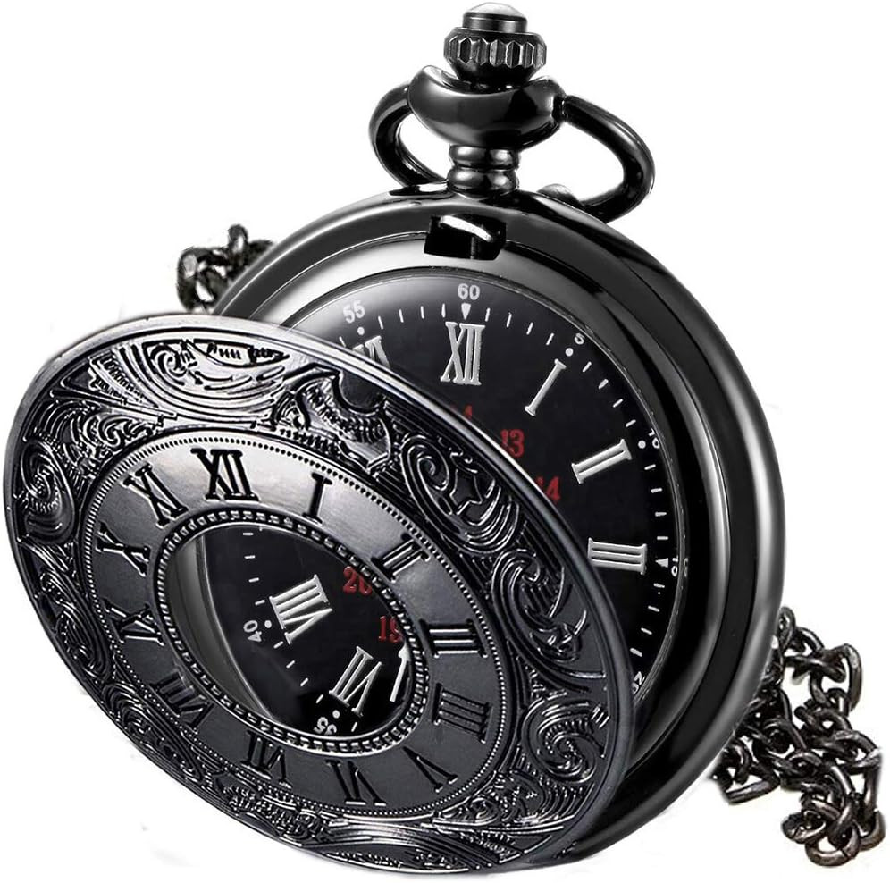 Vintage Pocket Watch for Men with Roman Numerals and Chain, 1Pc