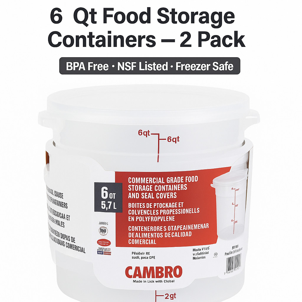 Cambro 6 Qt Translucent Round Food Storage Containers w/ Lids 2 Pack BPA Free NS