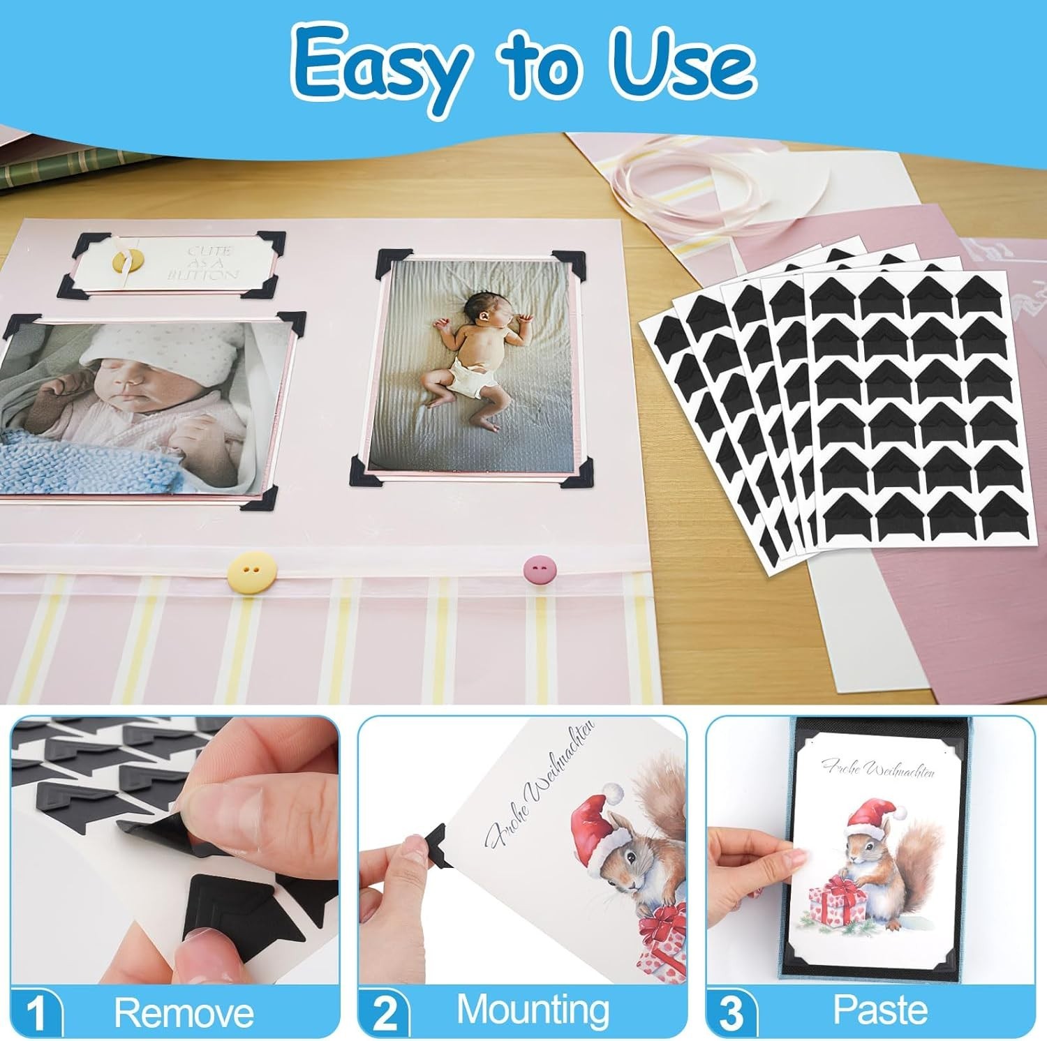 432 Pcs Self-Adhesive Acid Free Photo Corners for Scrapbooking and Albums Black