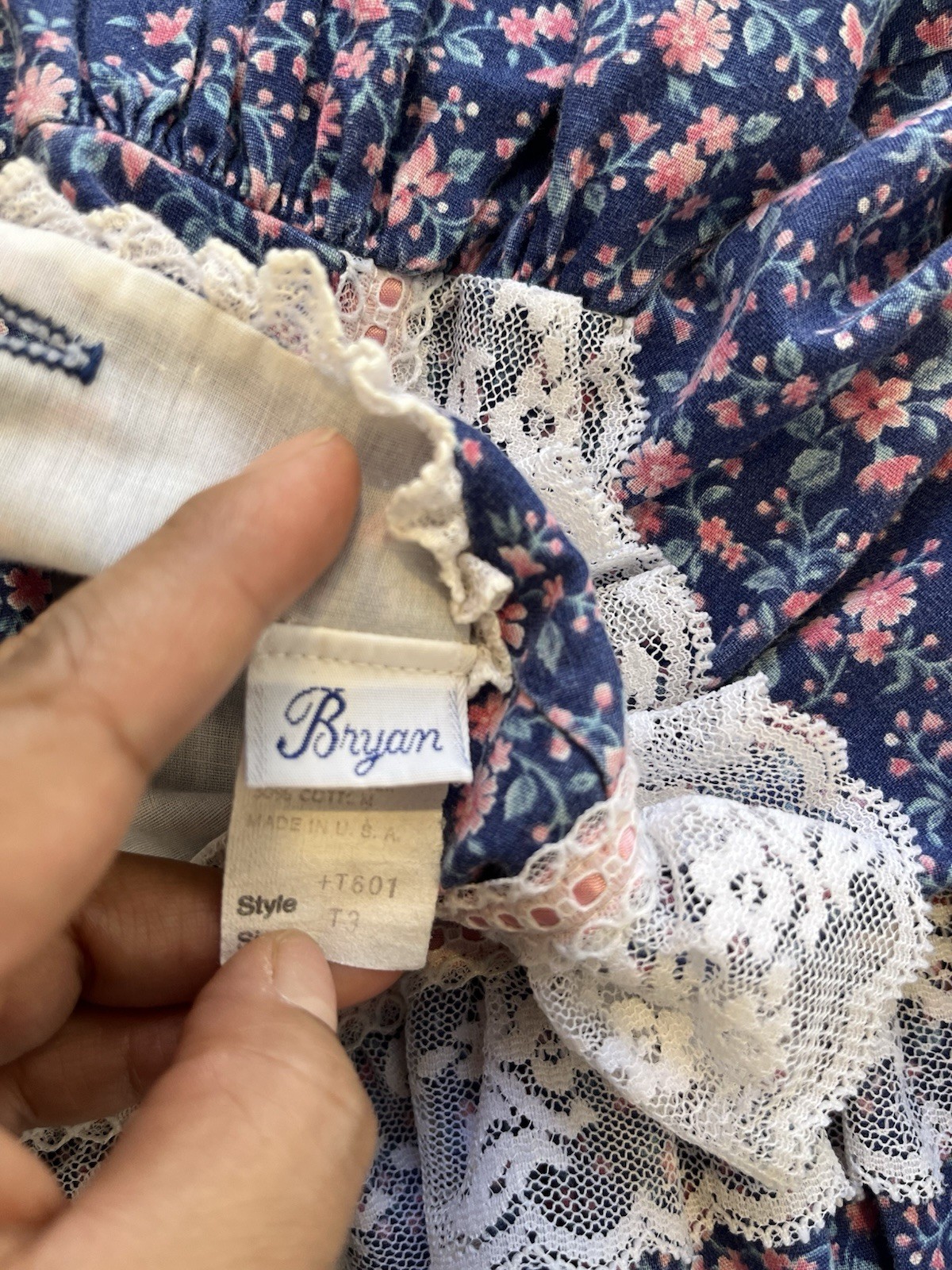Vintage Bryan Girls Dress 3T Floral Lace USA Long Sleeve