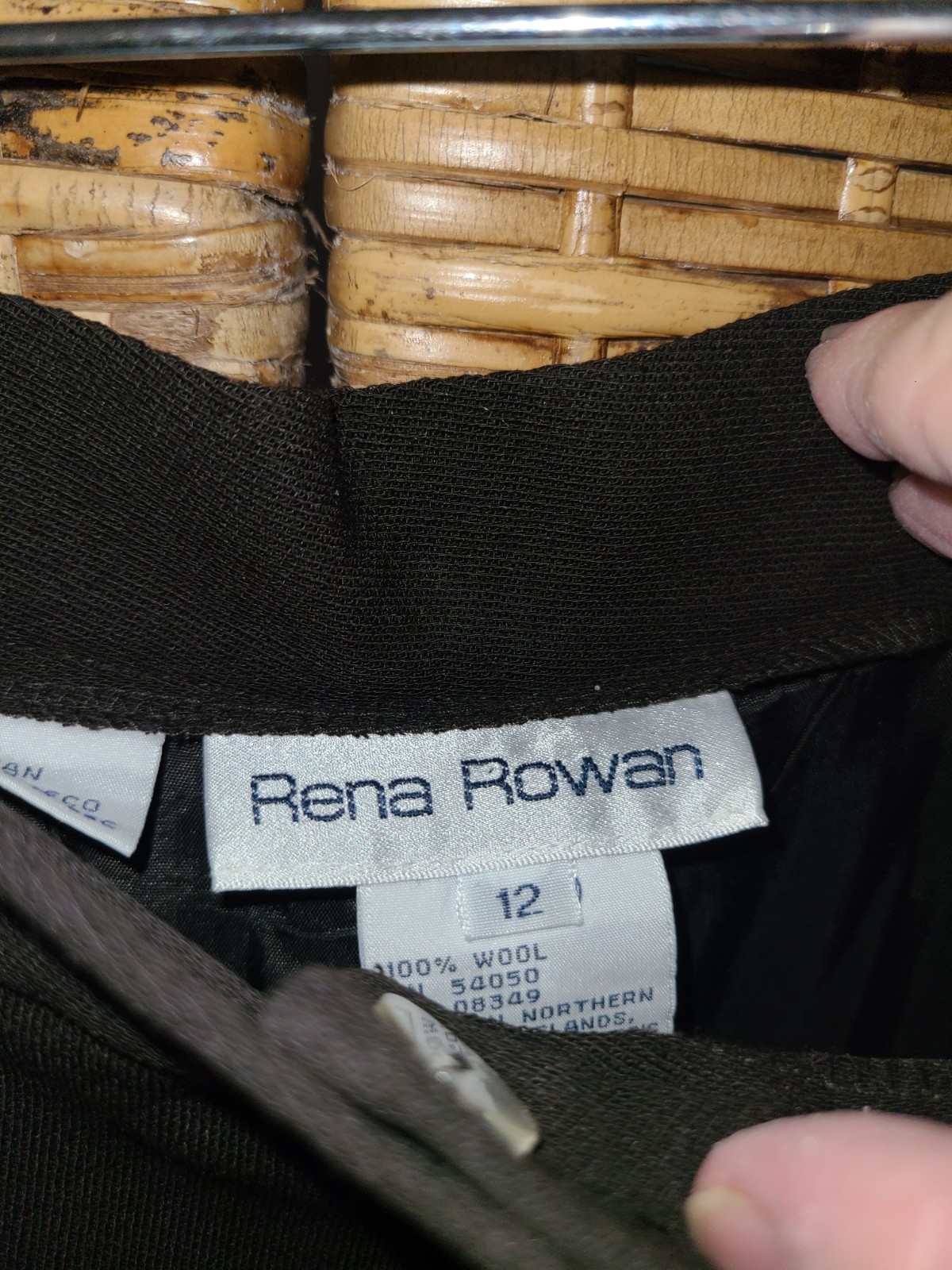 Vintage Rena Rowan Black Wool High Waist Dress Pants Size 12 Lined Pleated