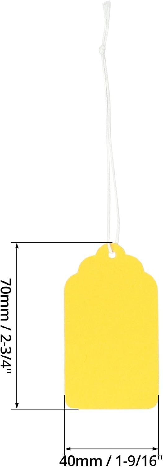 Price Tags, 500 Pcs Yellow Paper Gift Tags with String, 2.76 X 1.69 Blank Mark