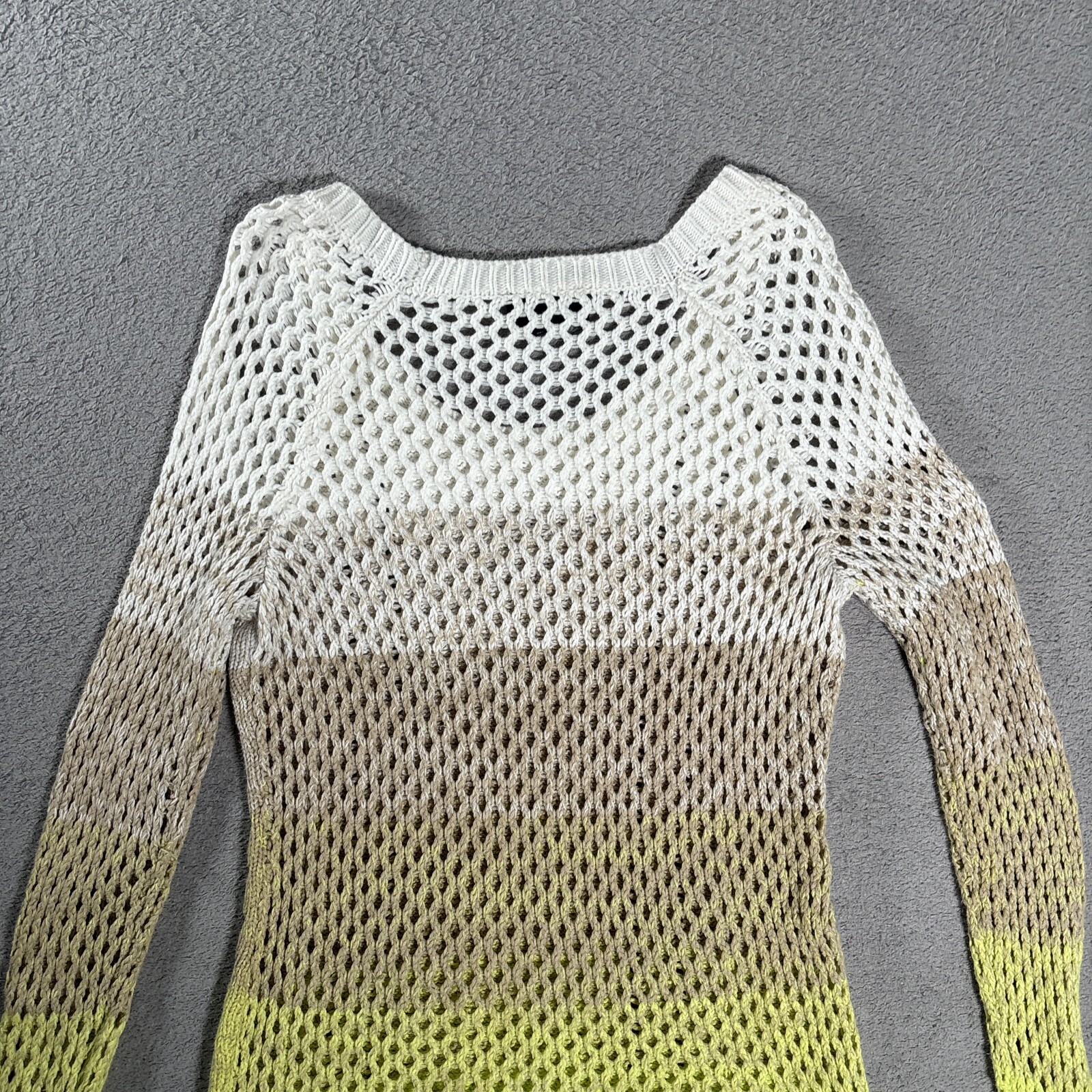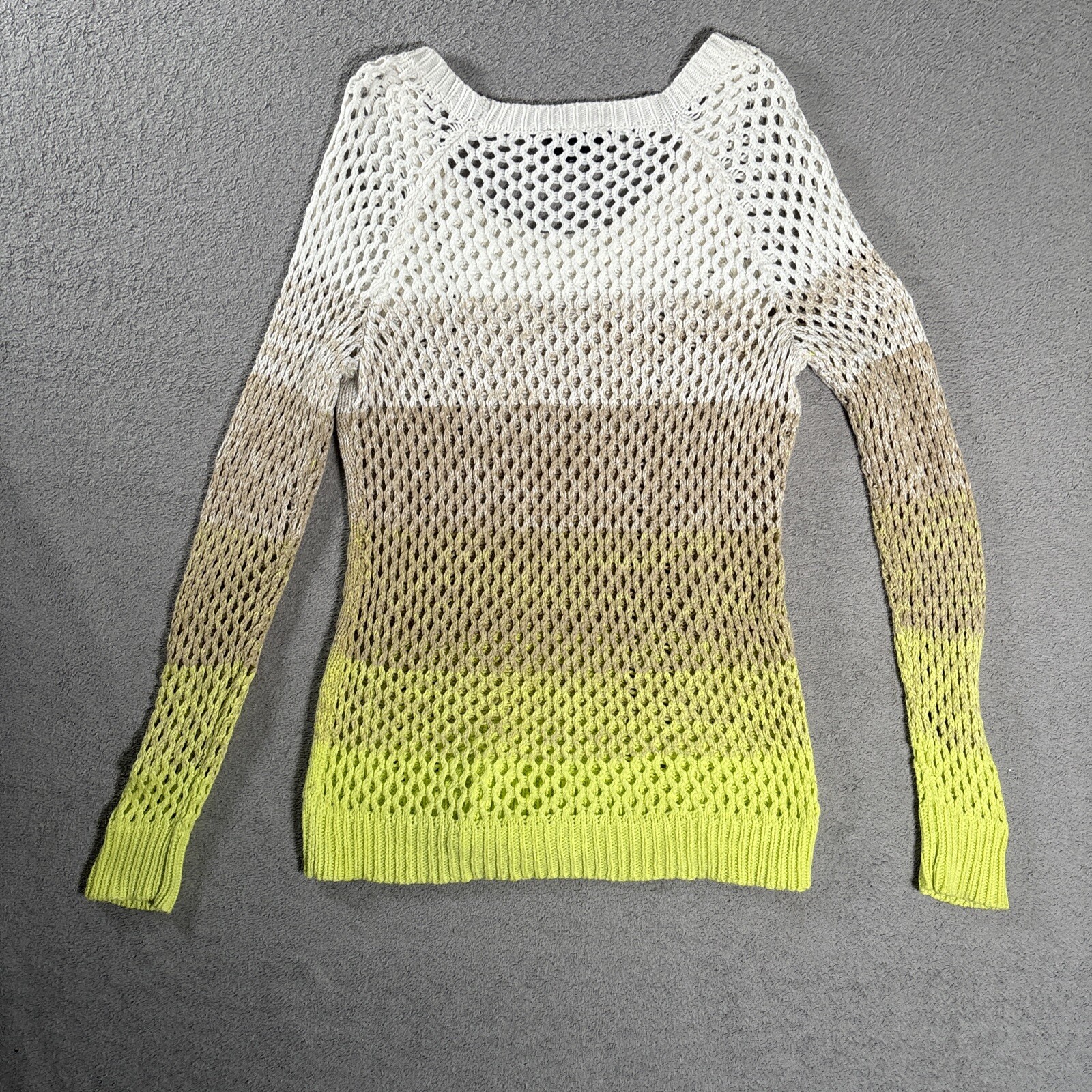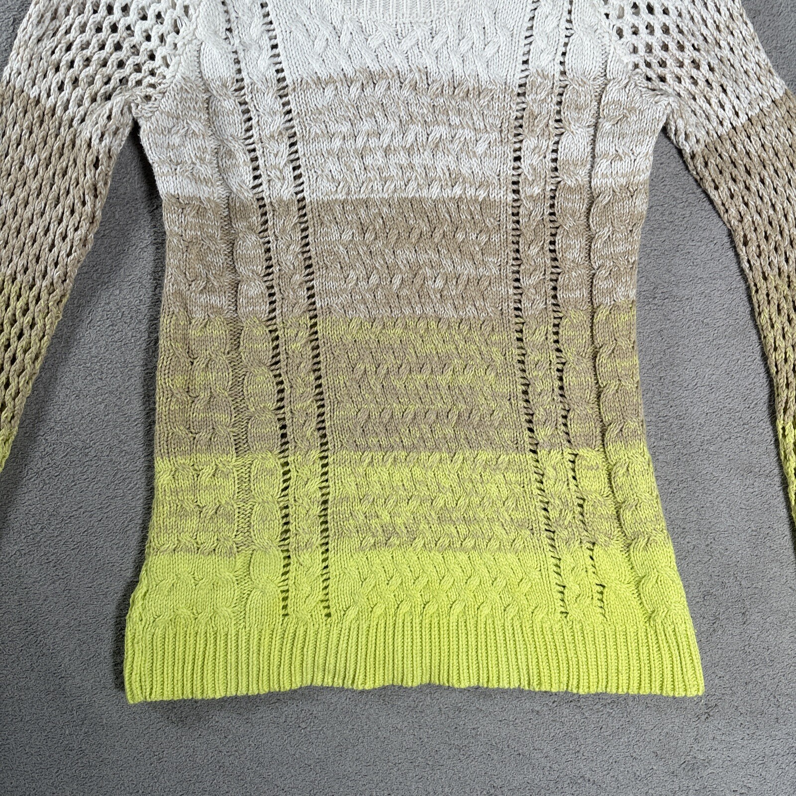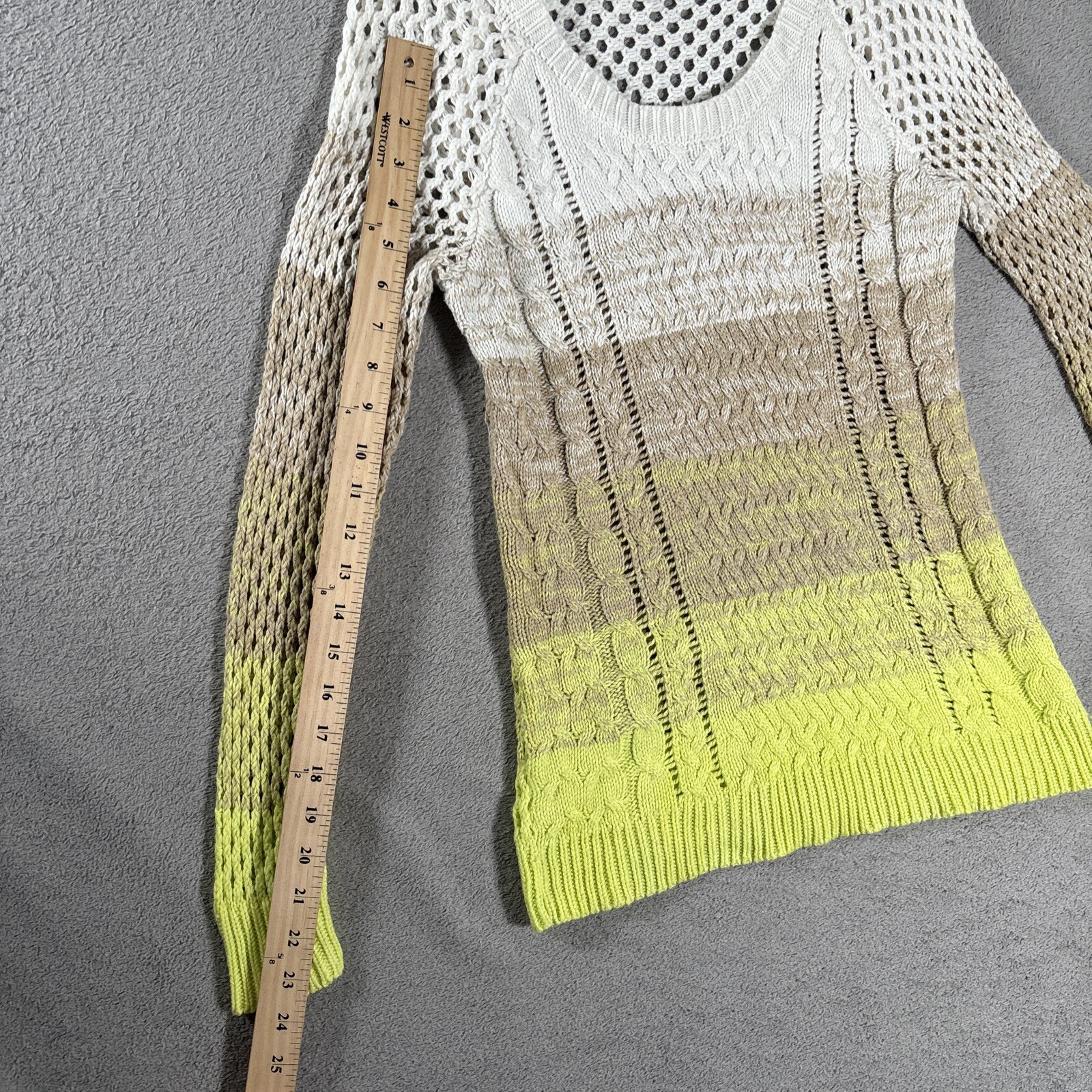 Hooked Up By I.O.T Open/Cable Knit Sweater Women s Size S Yellow Tan White