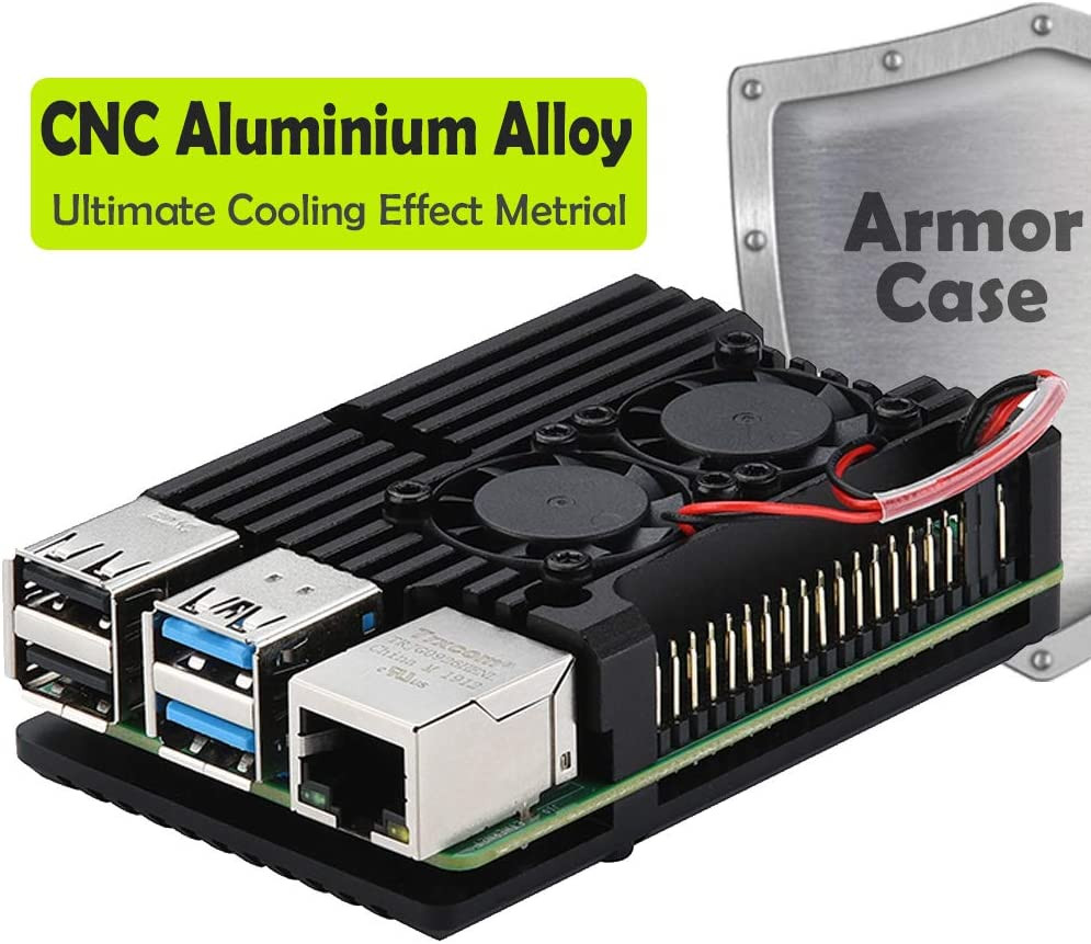 Armor Case for Raspberry Pi 4 - Metal Case with Dual Fan Aluminium Alloy, Pi 4 H