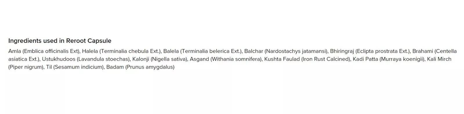 Active Ingredients: Emblica officinalis, Terminalia chebula, Terminalia beleric, Nardostachys jatamansi, Nigella sativa), (Withania somnifera