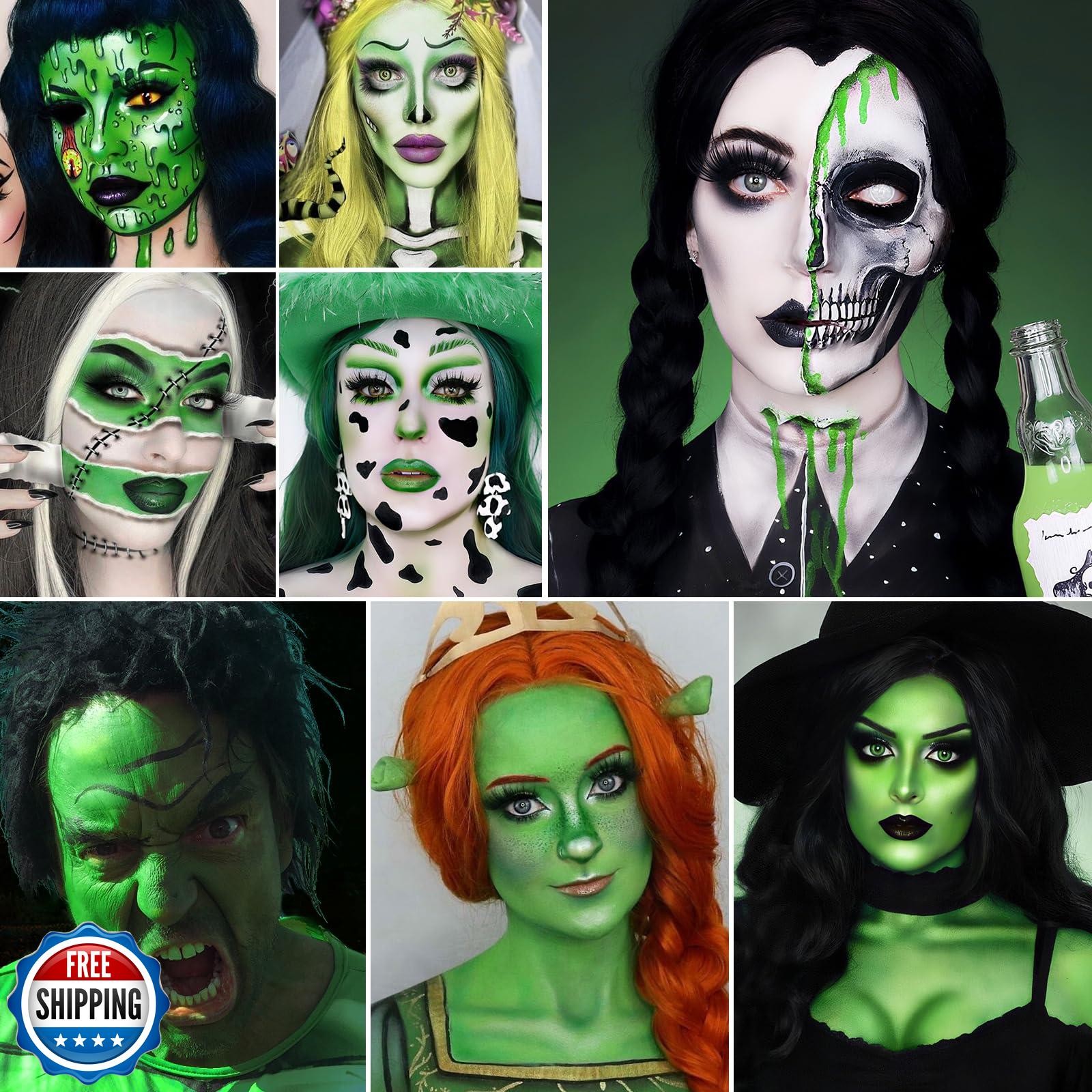 Black White Green Face Paint Kit 3 50g Oil-Based Grease Makeup with Remover