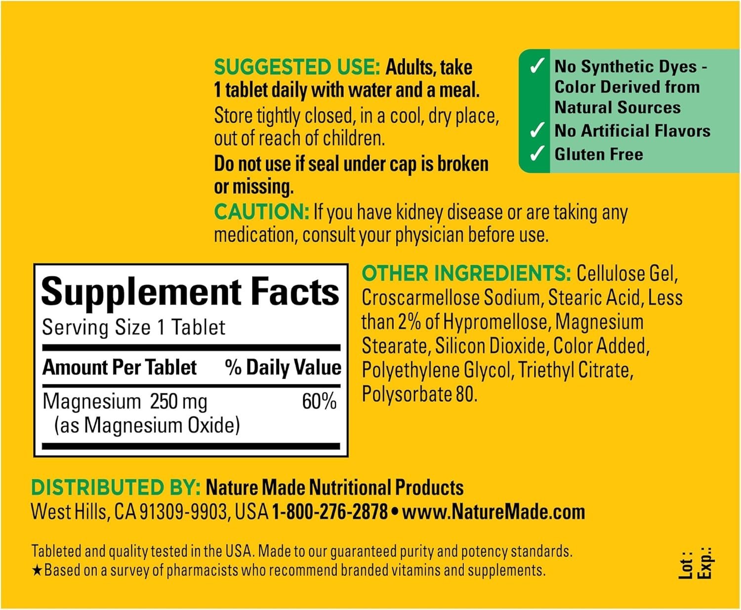 Nature Made Magnesium Oxide 250 mg, Magnesium Supplements for Men and Women,