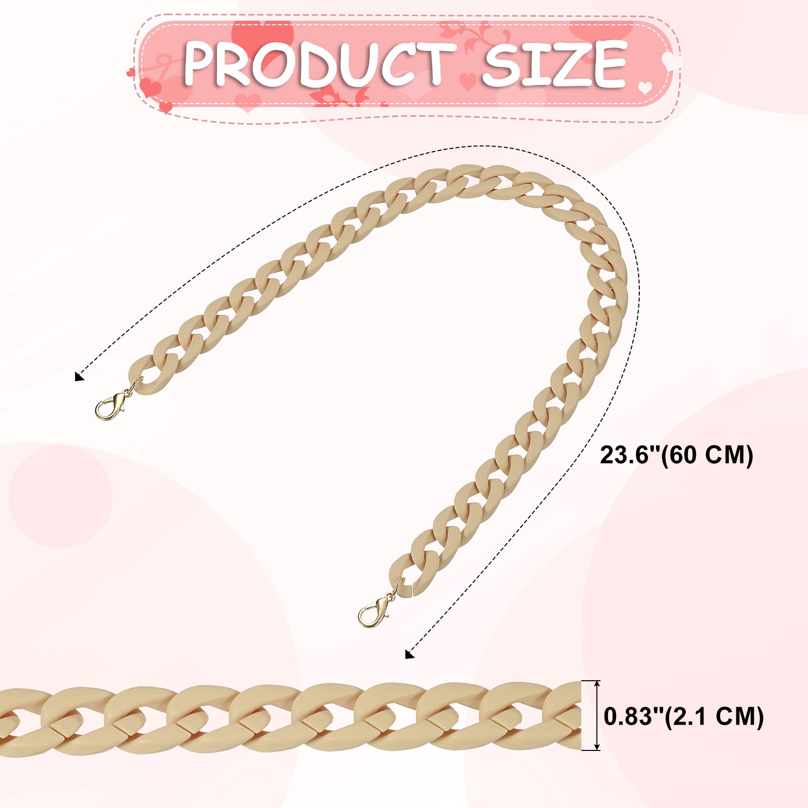как выглядит Acrylic Purse Strap,23.6" Matte Bag Chain Replacement Apricot фото