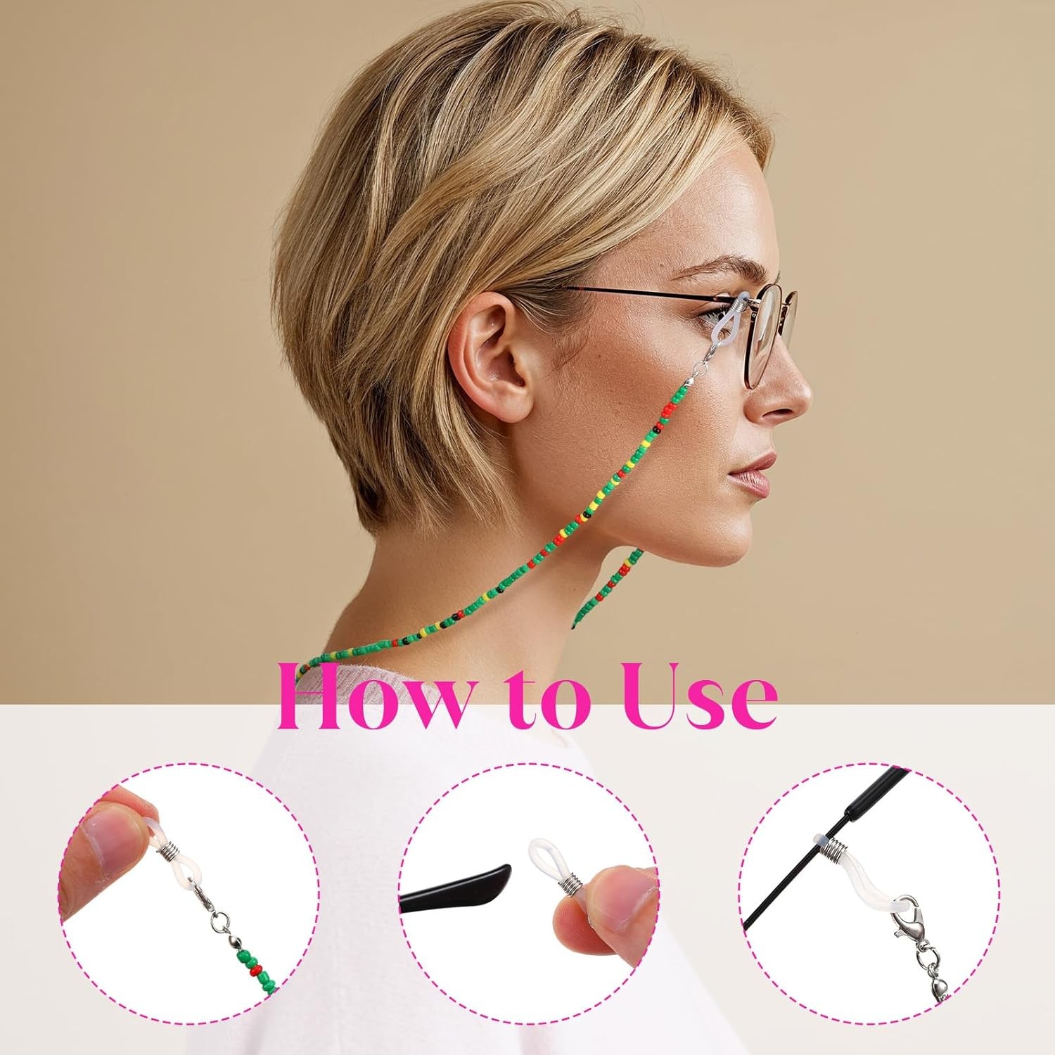 как выглядит 8 PCS Beaded Eyeglass Chains for Women, Colorful Acrylic Wire Glasses... фото
