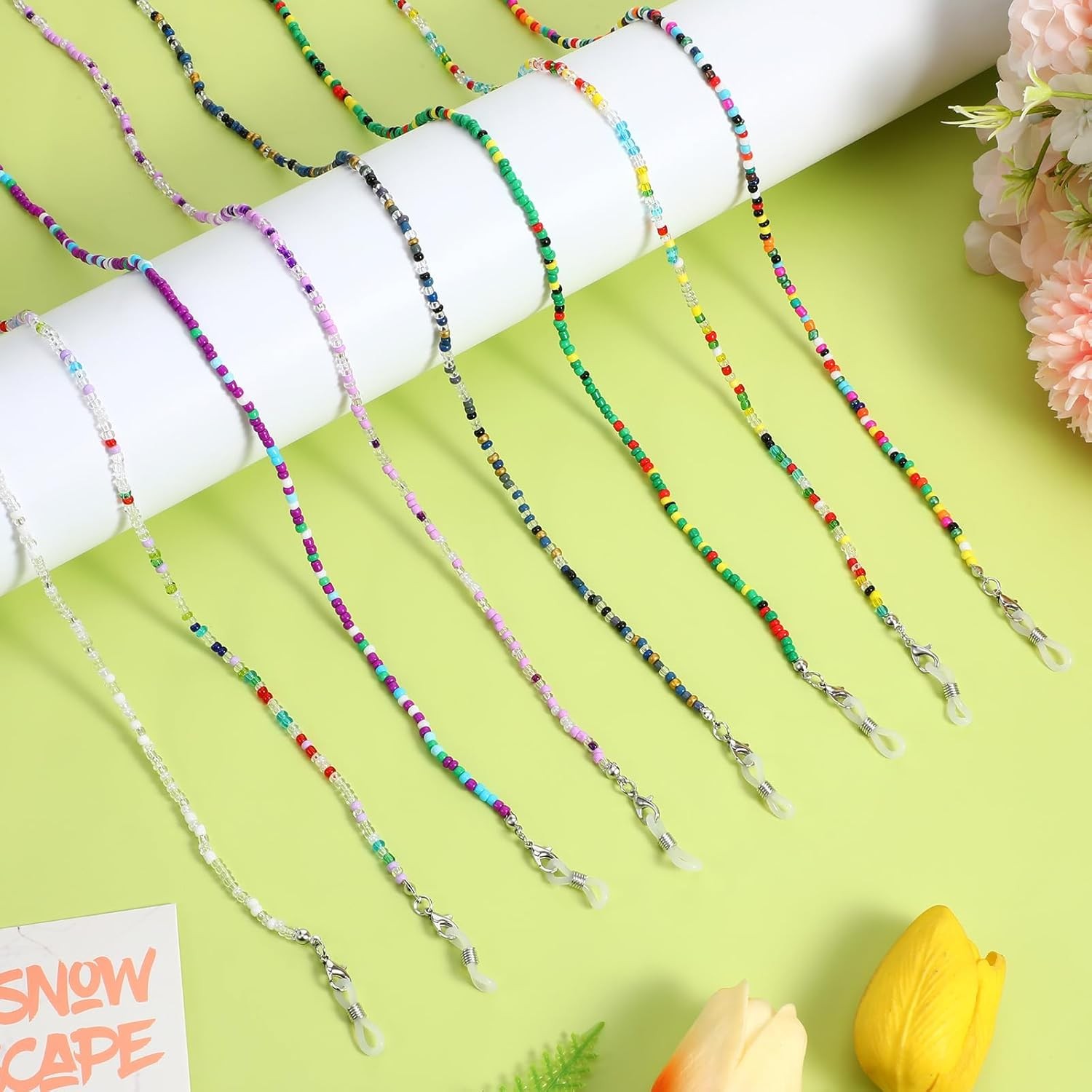 8 PCS Beaded Eyeglass Chains for Women, Colorful Acrylic Wire Glasses...