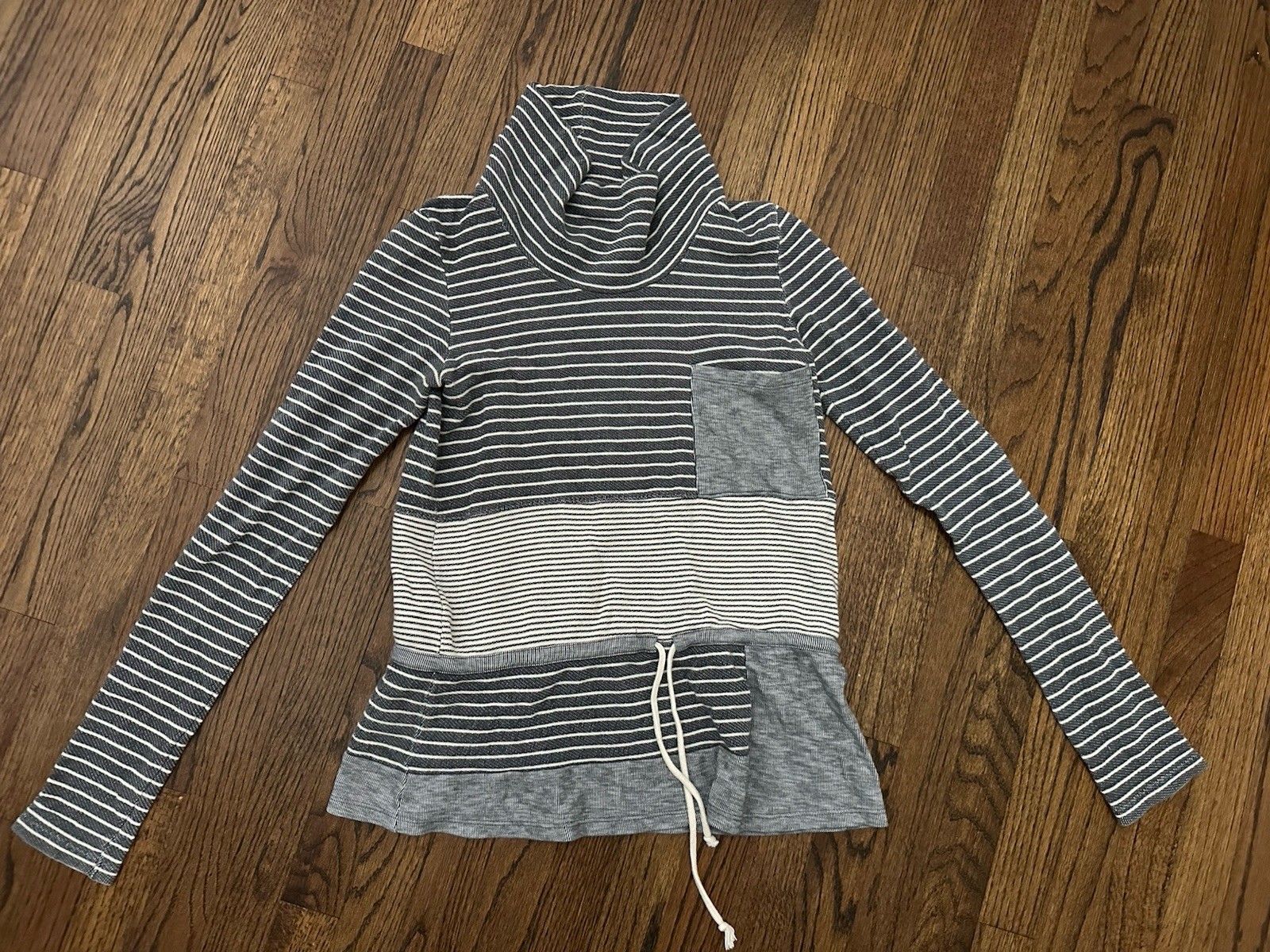 как выглядит Saturday Sunday Anthropologie GrayStriped Cowl Neck Lightweight Sweater Size M фото
