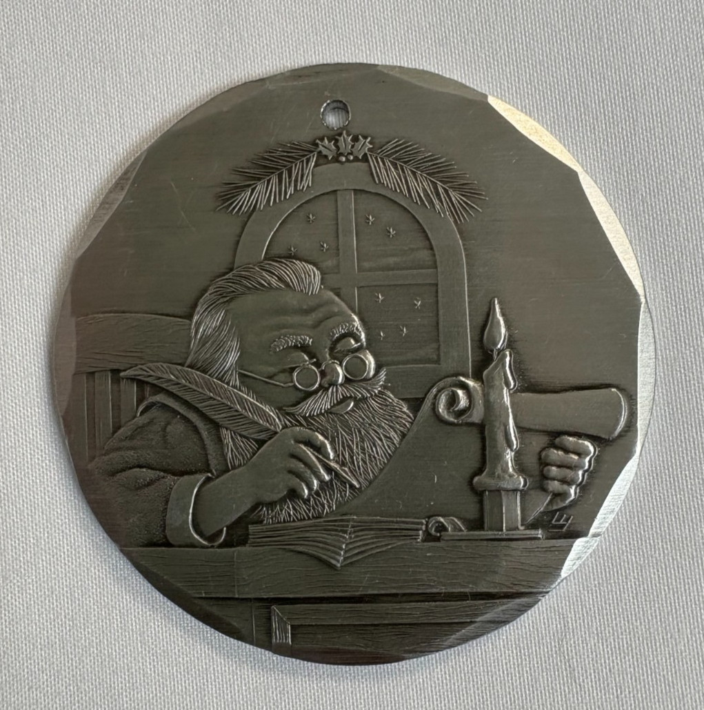 • Wendell August Forge Vintage 1996 Aluminum Christmas Ornament Checking His List