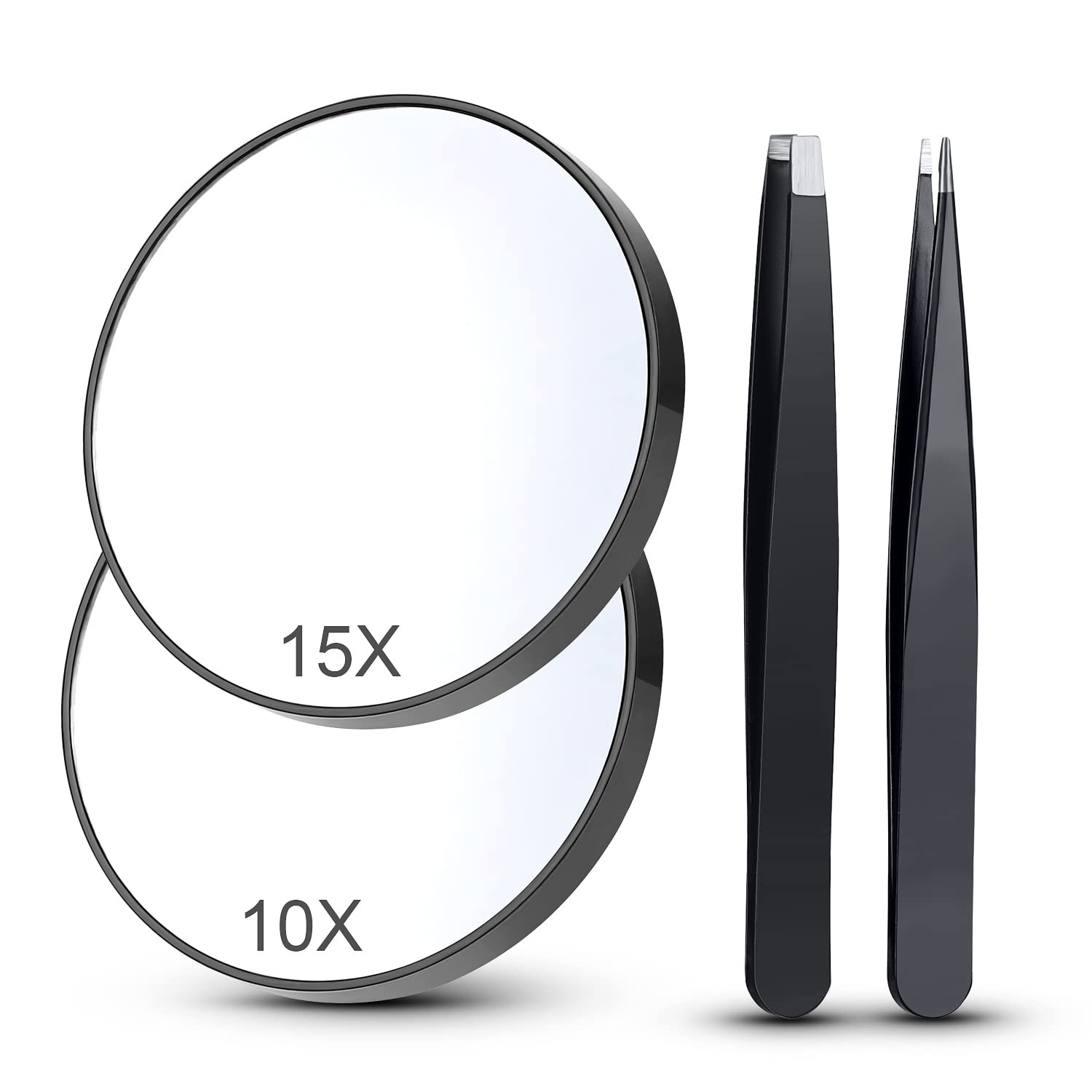 Magnifying Mirror and Two Tweezers Kit, 10X 15X Portable Magnifying Makeup Mi