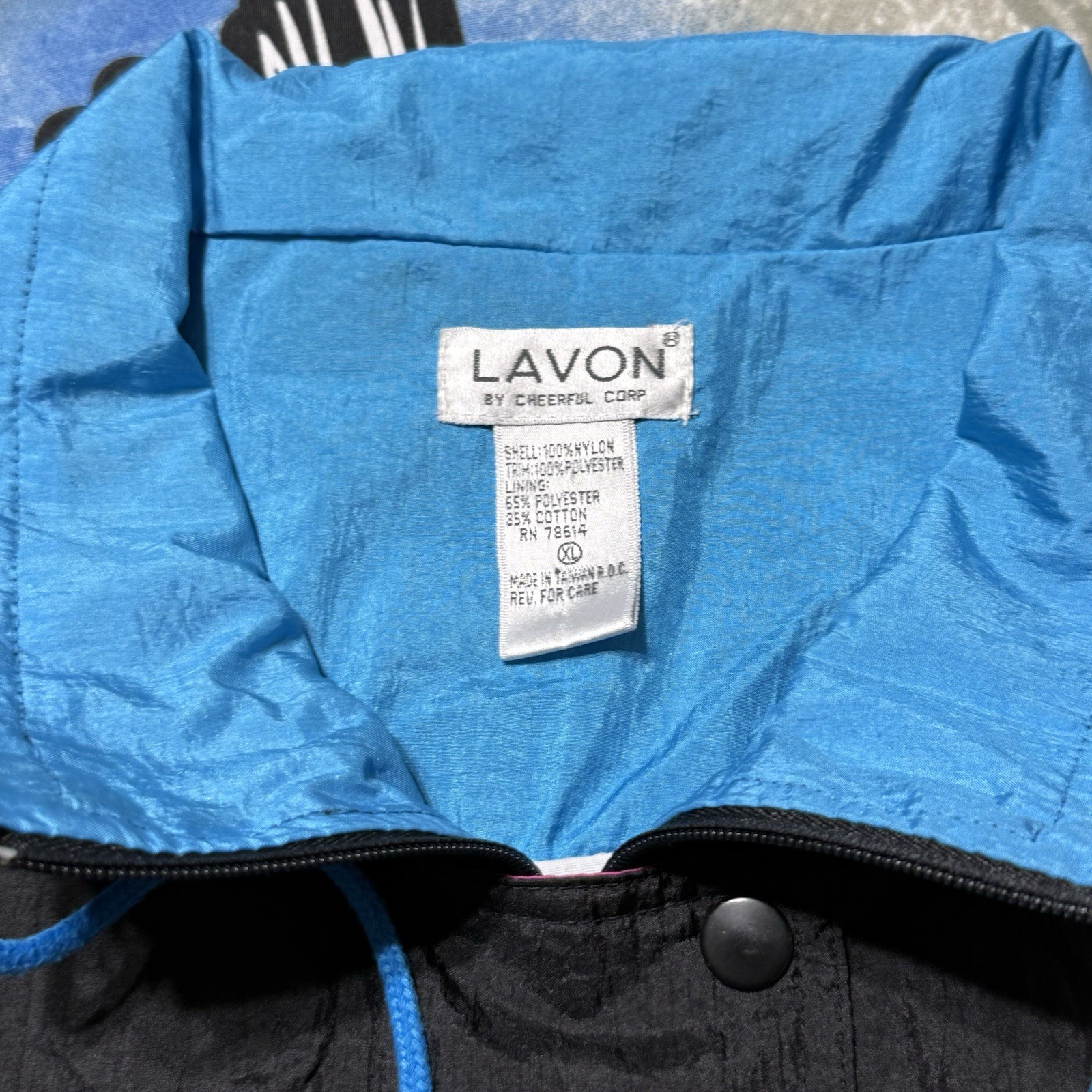 как выглядит Lavon 80s Geometric Nylon Full Zip Windbreaker Track Womens XL Jacket фото