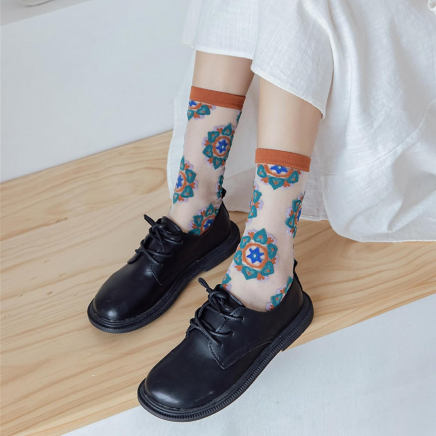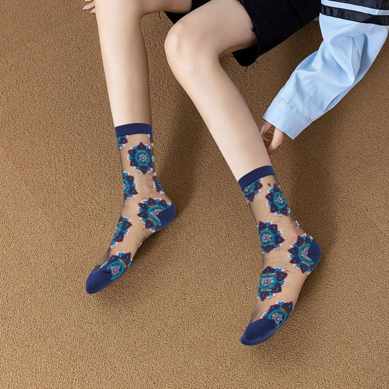 Sheer Socks Mesh Lace Socks Transparent See Through Socks Colorful Flower Nylon