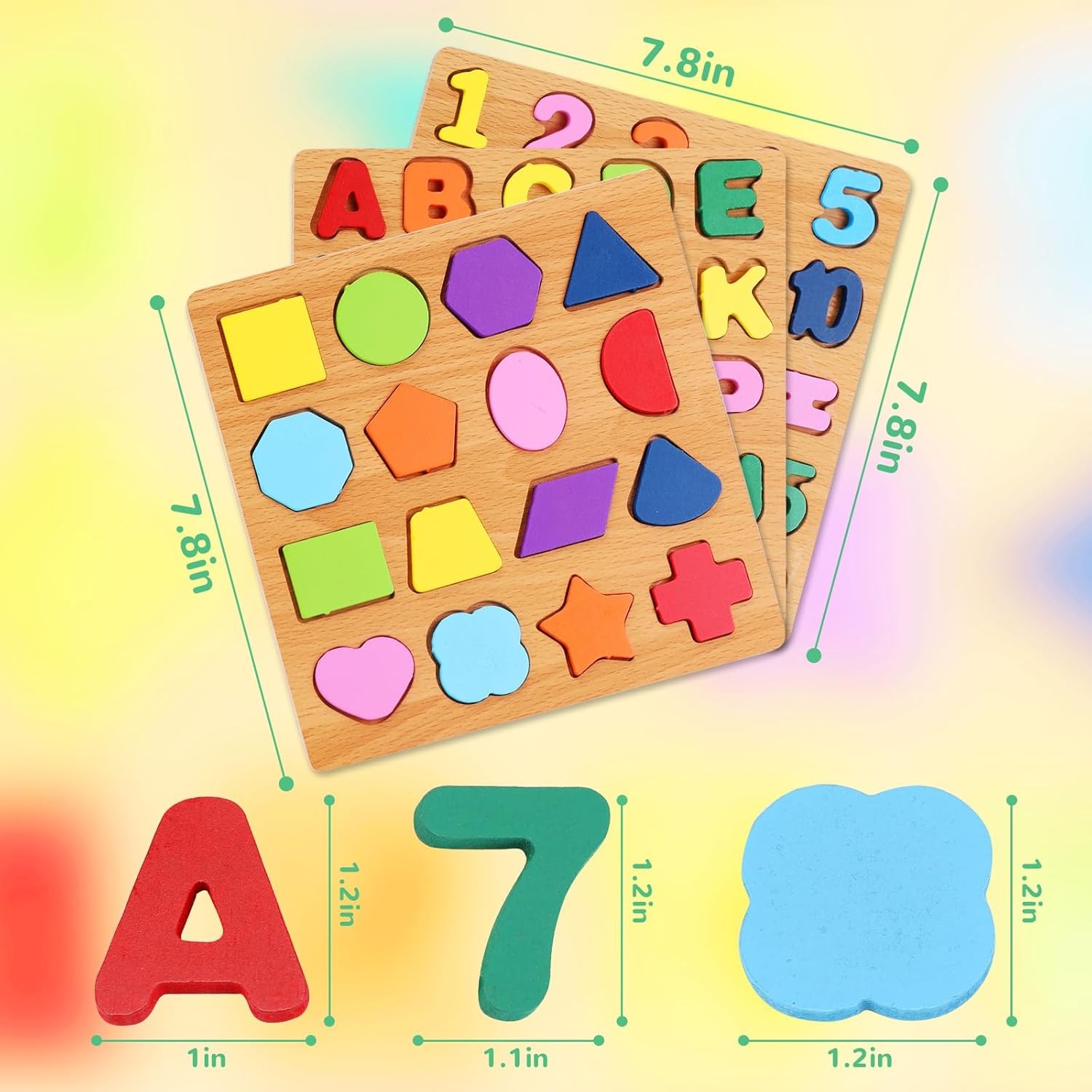 как выглядит Alphabet Wooden Puzzles for Toddlers 3-5, Pack of 3 ABC, Number 3-pack Set фото