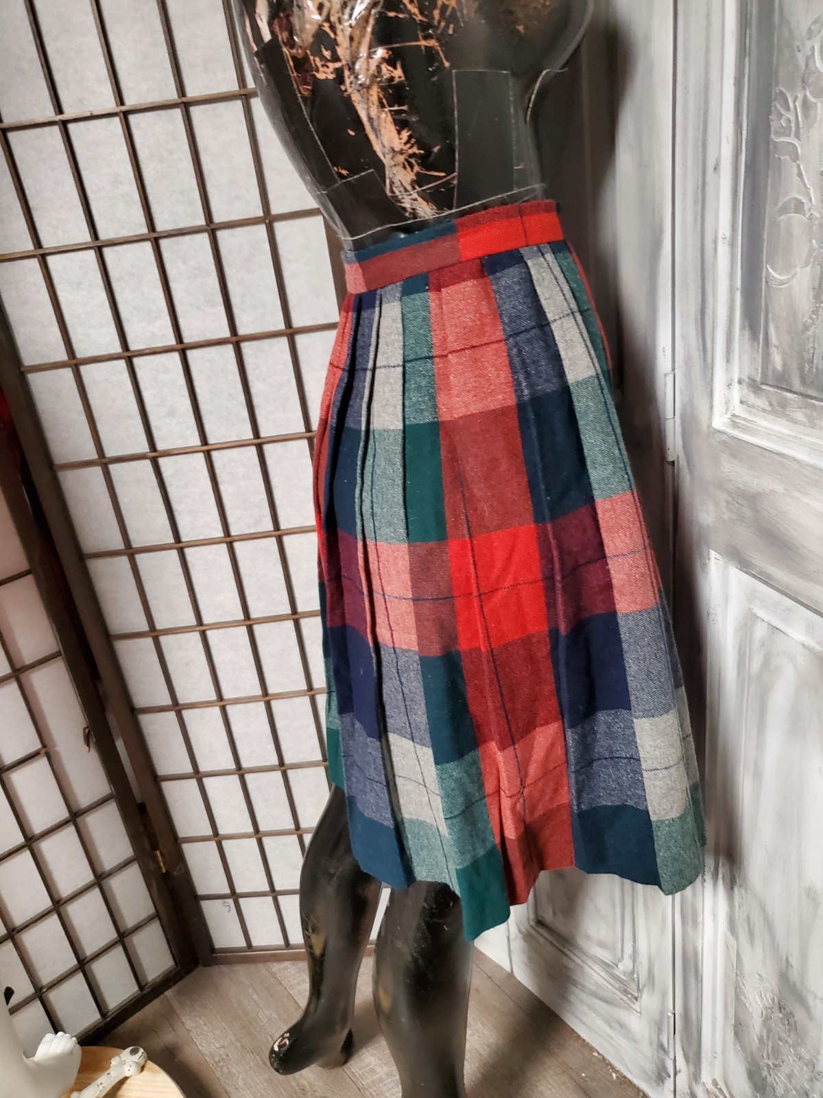 как выглядит Vtg 70s Wool Blend Wrap Skirt A LINE Mini Preppy Academia 24" W Pleated фото