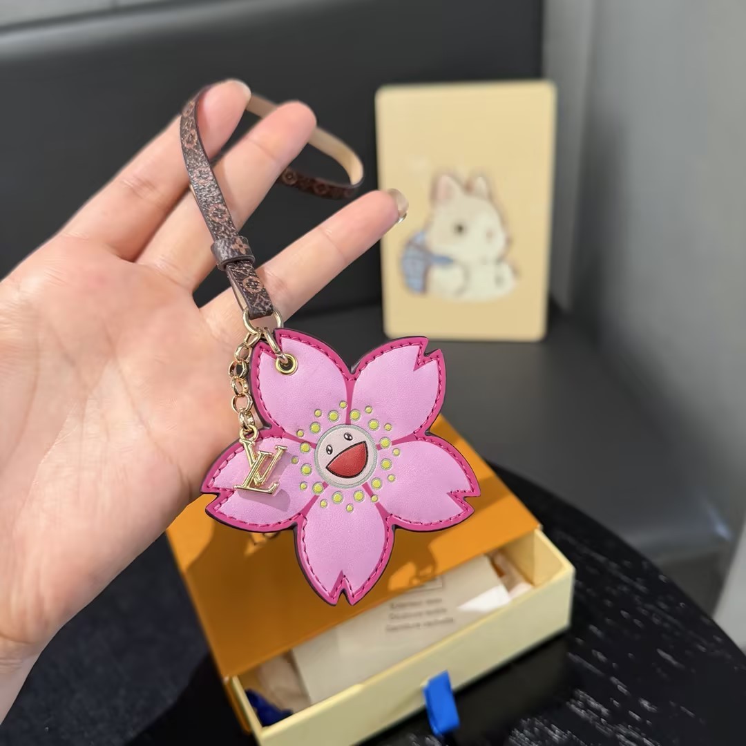 Leather TM Bag Charm Pink Cute Flower Keychain Charm Keyring Toy with Gift Box