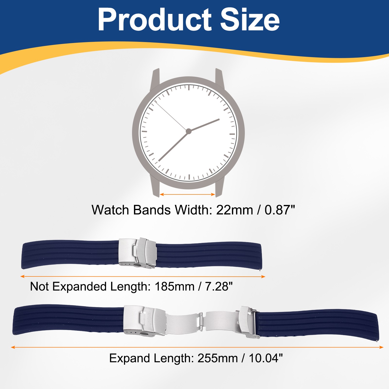 Silicone Watch Bands 22mm Soft Watch Bands with Silver Snap Buckle, Dark Blue