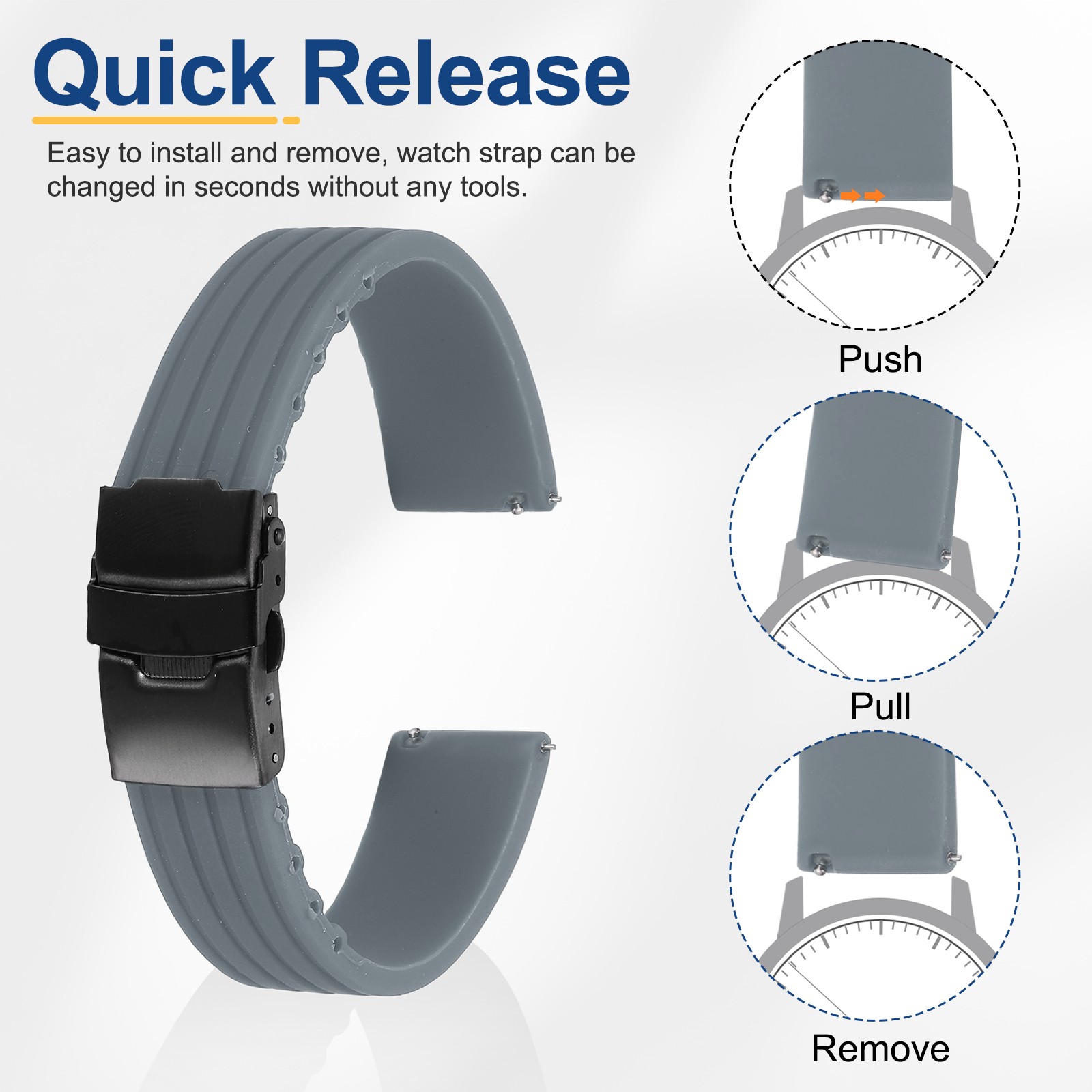 Silicone Watch Bands 18mm Soft Watch Bands with Black Snap Buckle, Gray