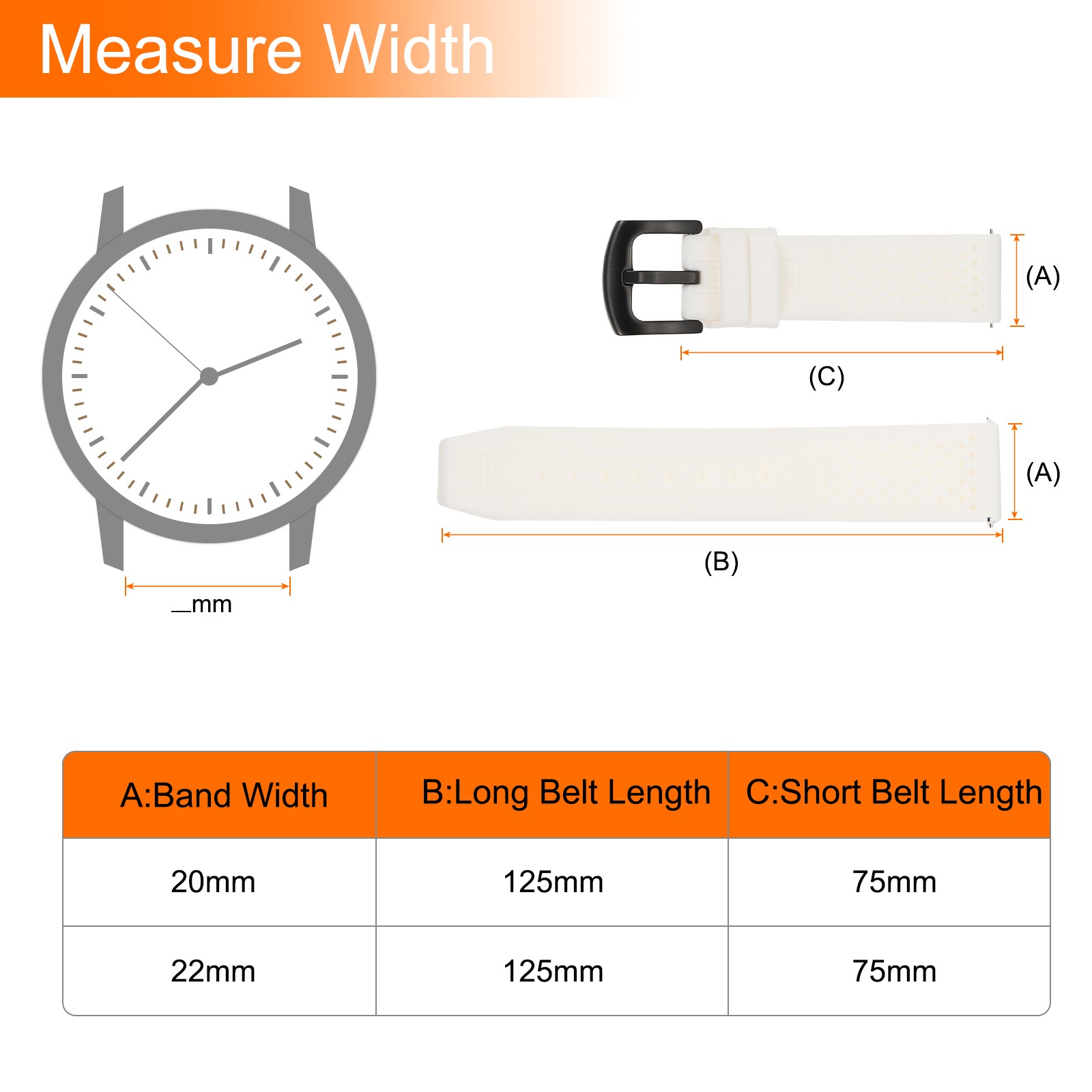 Silicone Watch Bands 20mm Soft Watch Bands with Black Buckle, White