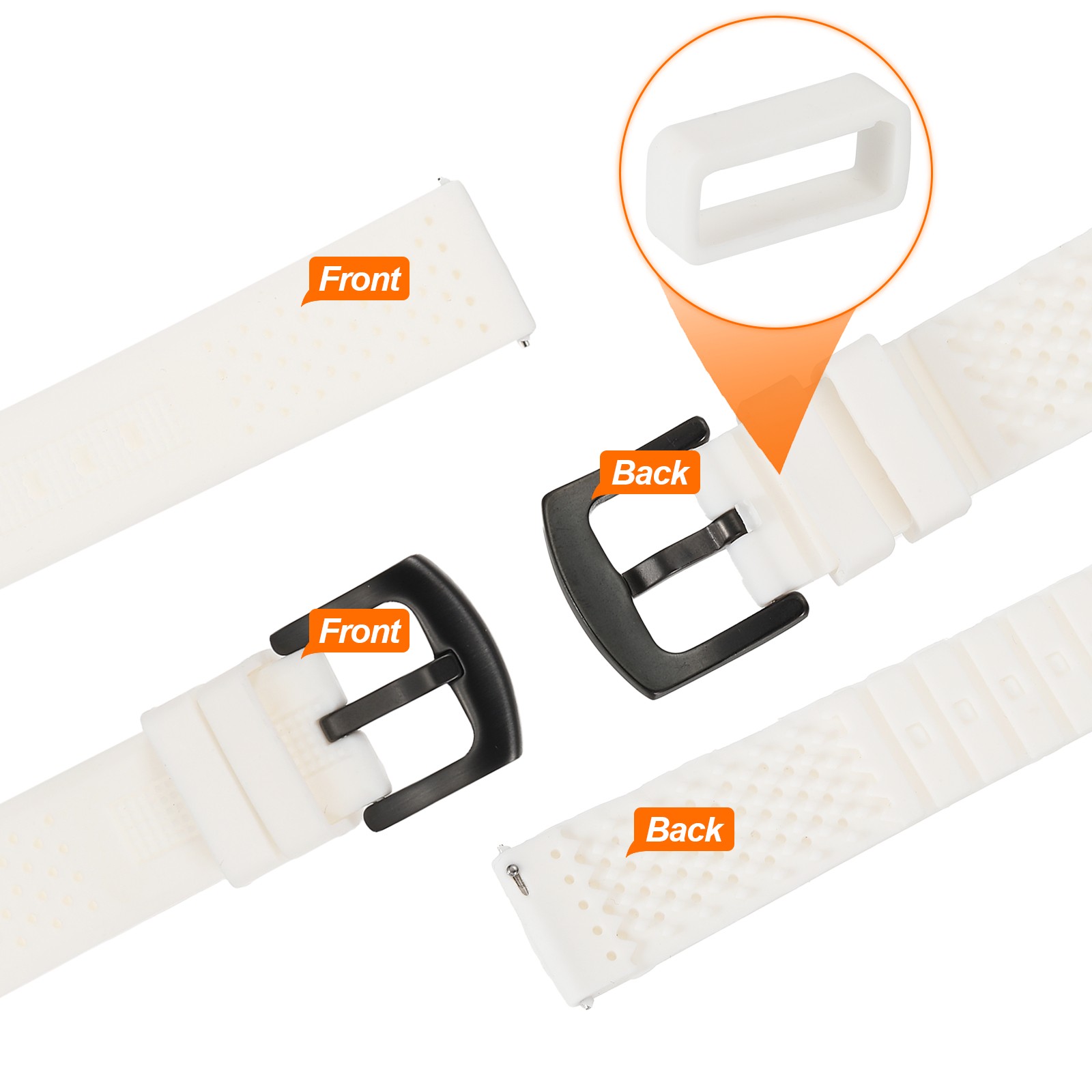 как выглядит Silicone Watch Bands 20mm Soft Watch Bands with Black Buckle, White фото