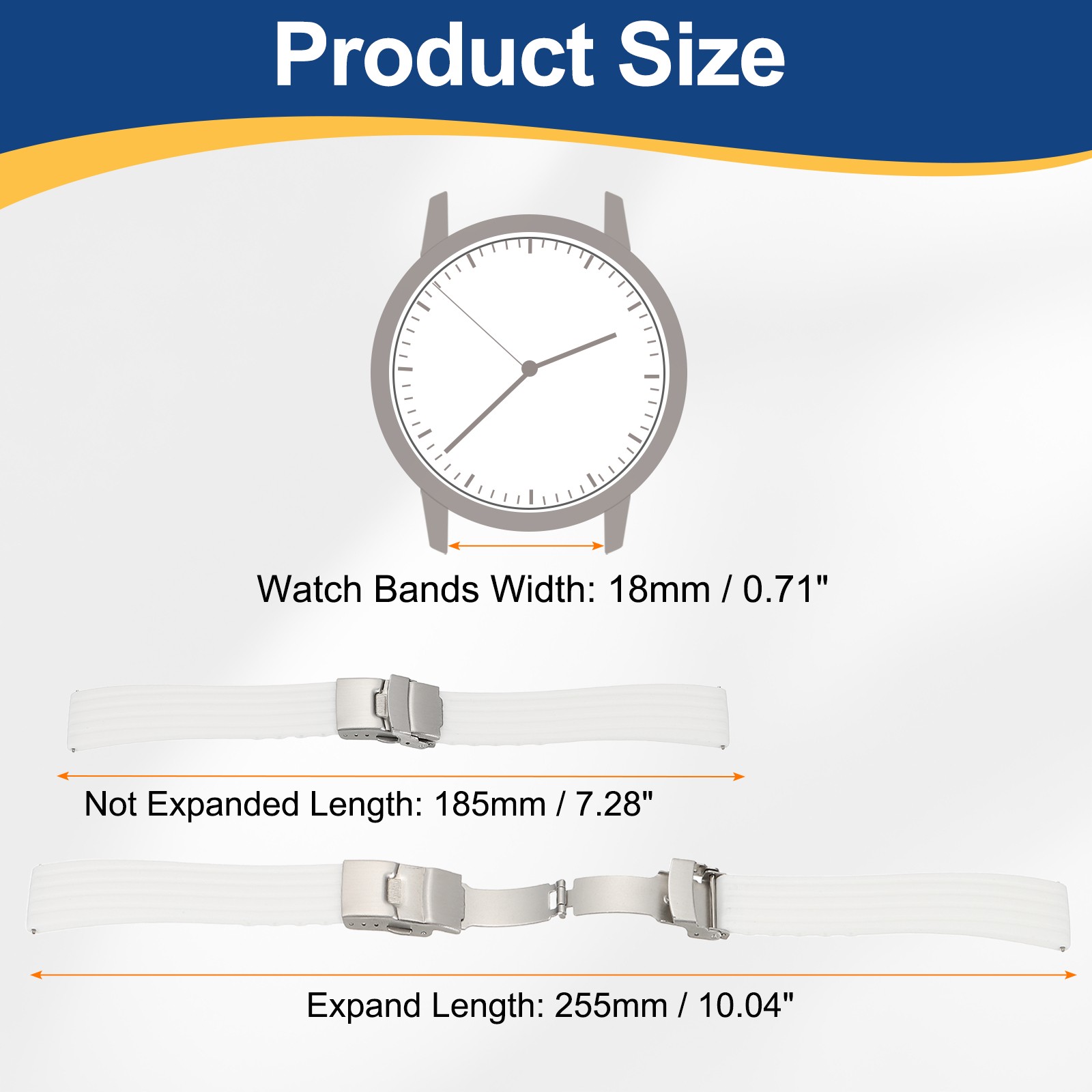 как выглядит Silicone Watch Bands 18mm Soft Watch Bands with Silver Snap Buckle, White фото