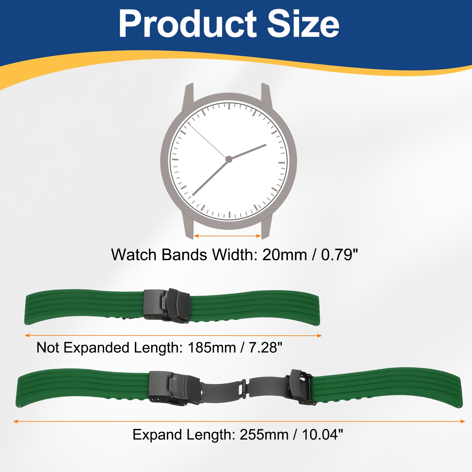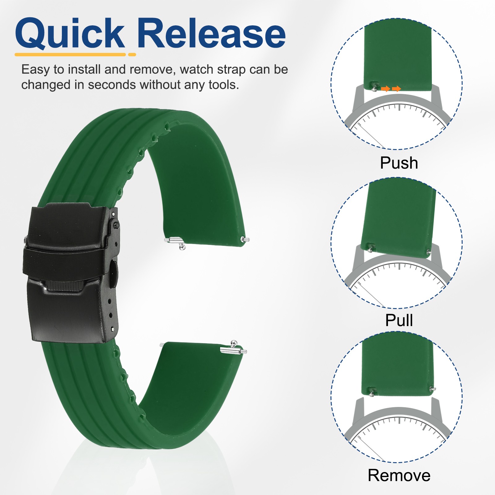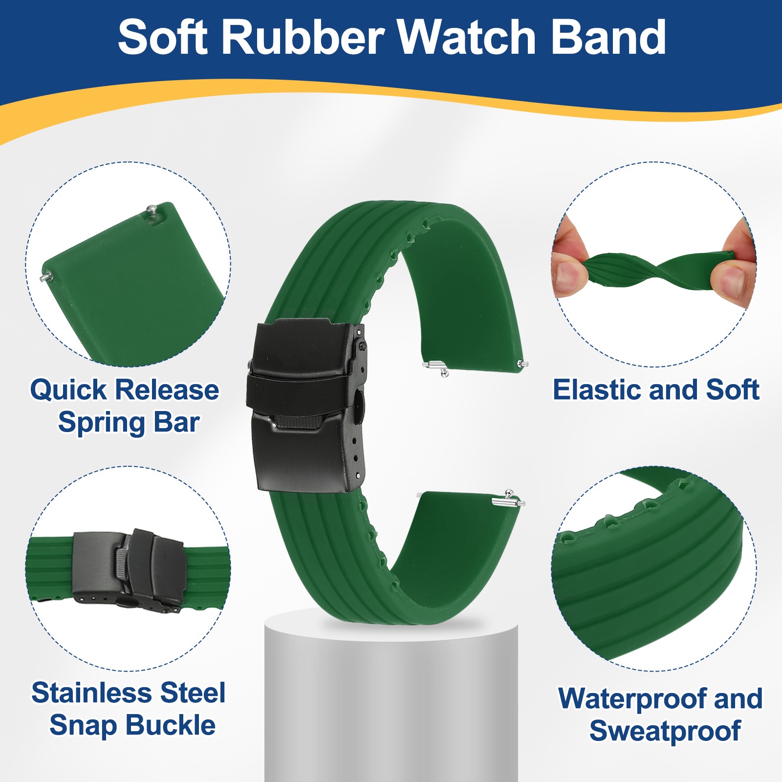 Silicone Watch Bands 20mm Soft Watch Bands with Black Snap Buckle, Green