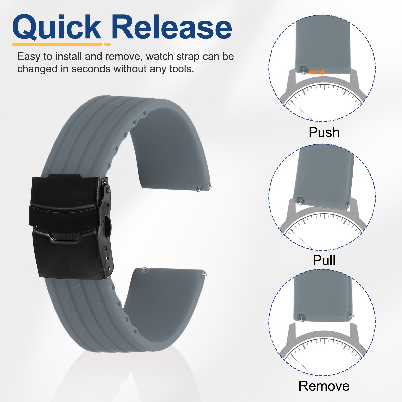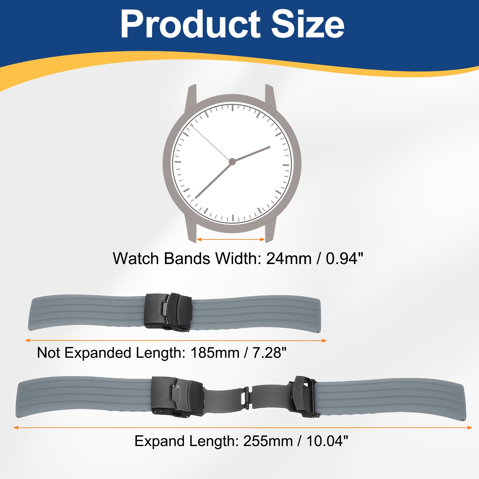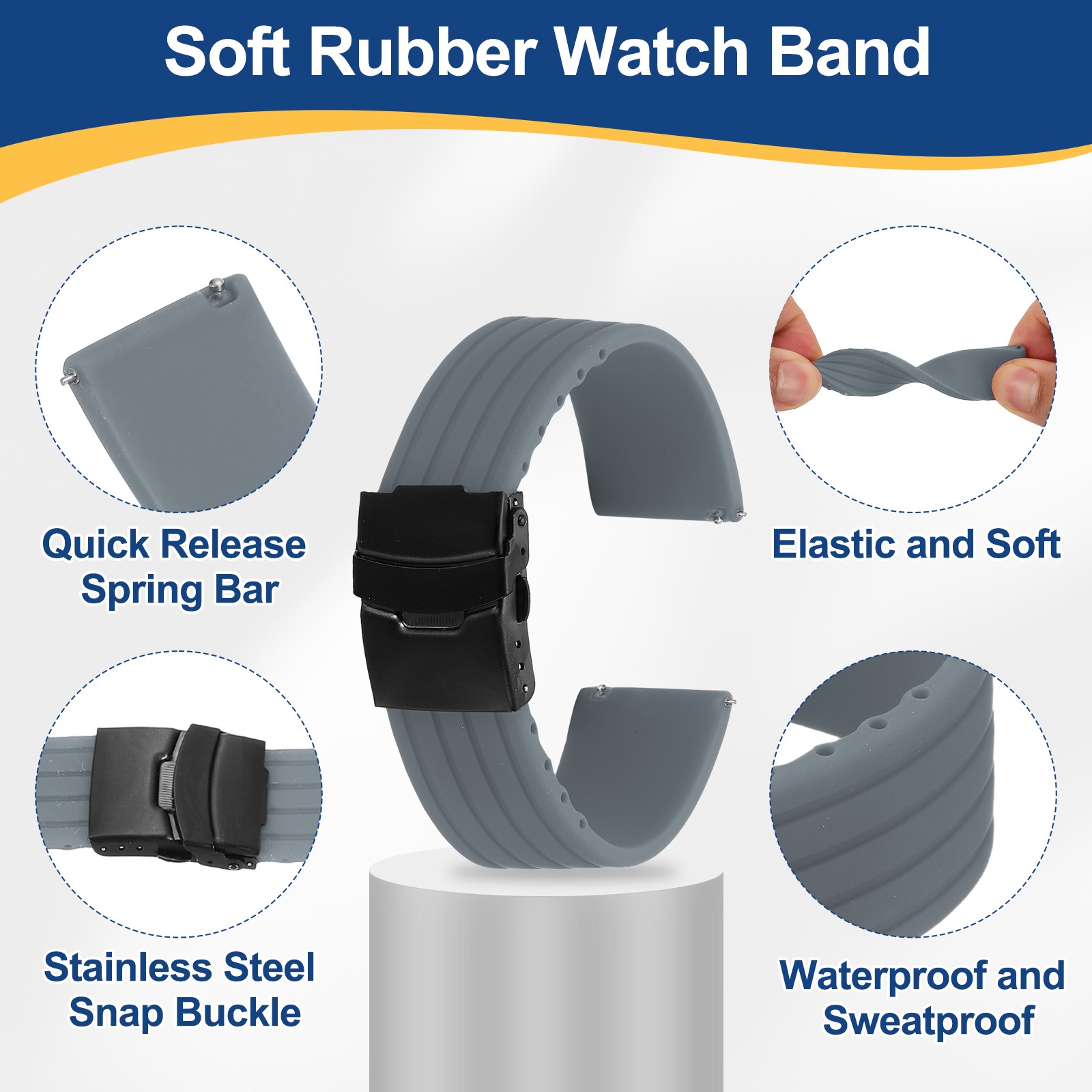 Silicone Watch Bands 24mm Soft Watch Bands with Black Snap Buckle, Gray