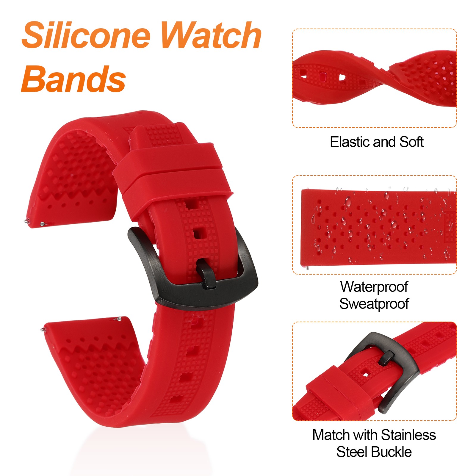 Silicone Watch Bands 22mm Soft Watch Bands with Black Buckle, Red