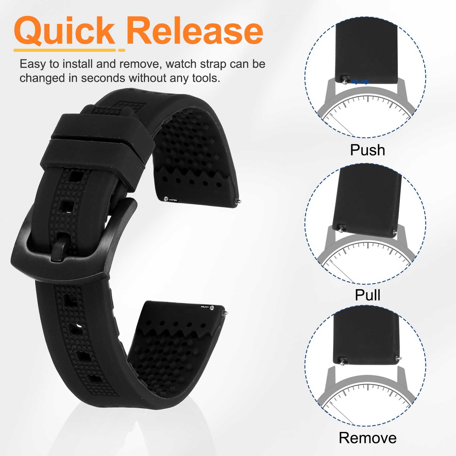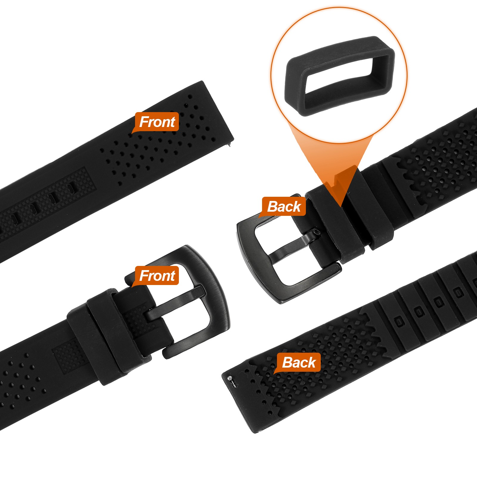 Silicone Watch Bands 20mm Soft Watch Bands with Black Buckle, Black