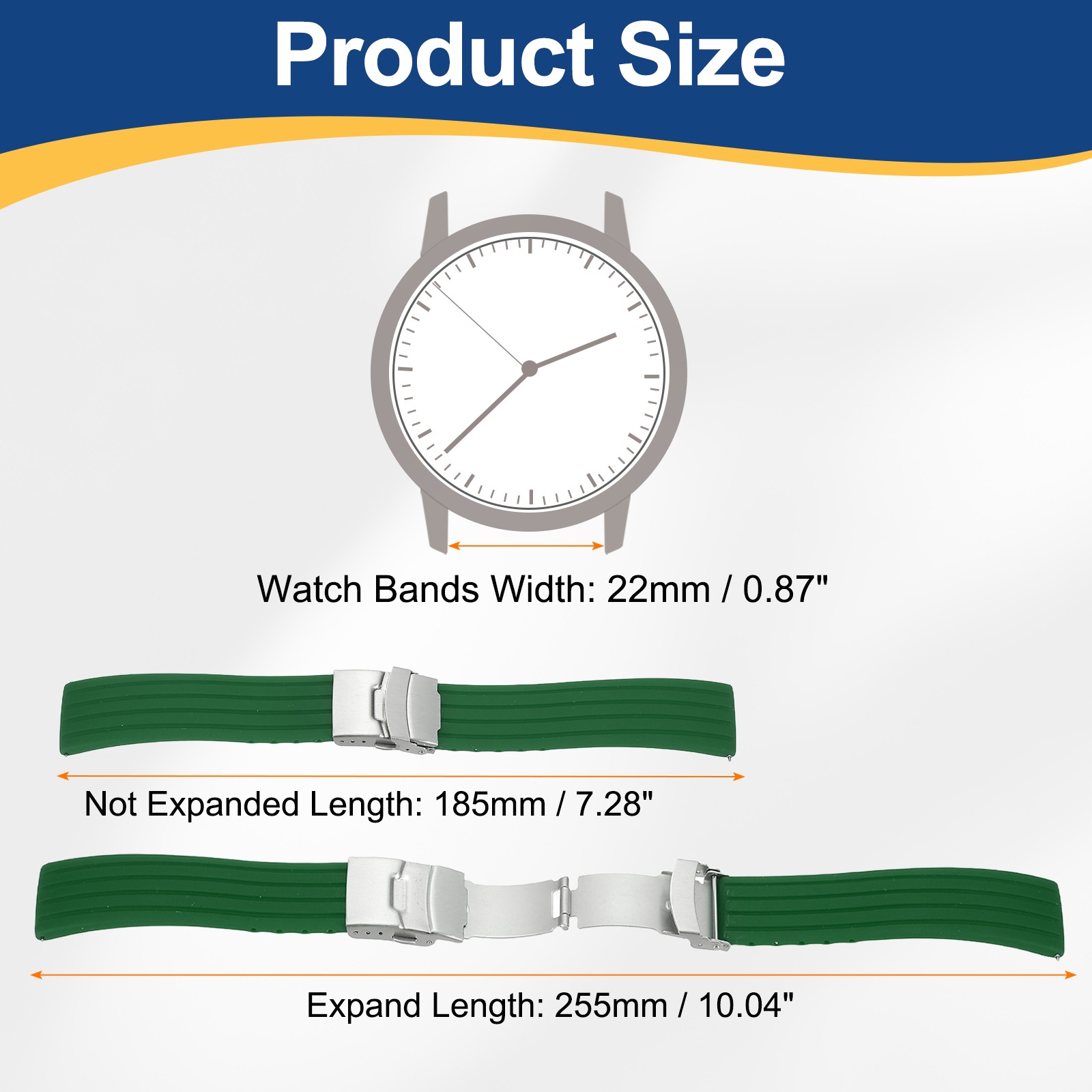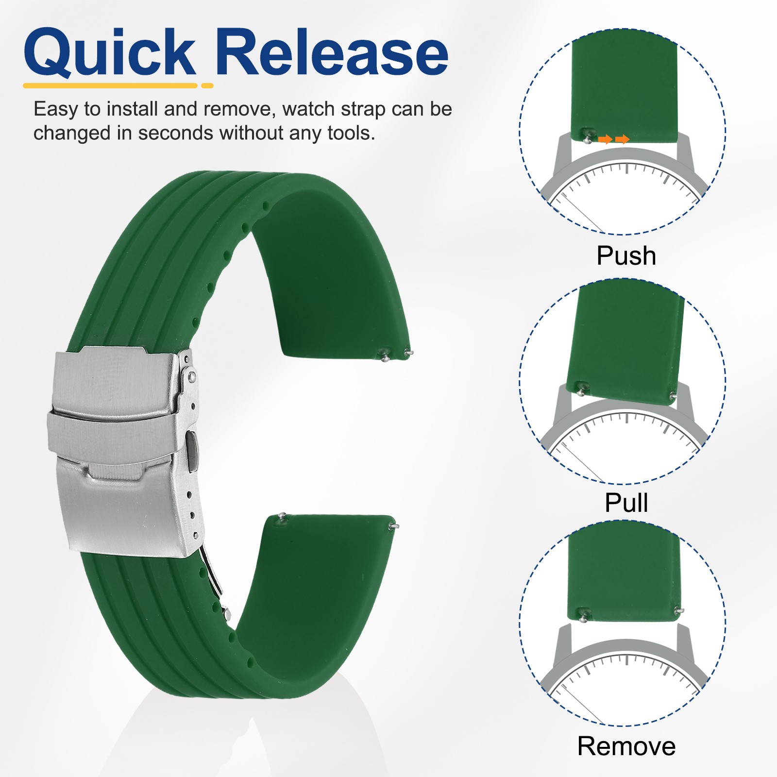 Silicone Watch Bands 22mm Soft Watch Bands with Silver Snap Buckle, Green