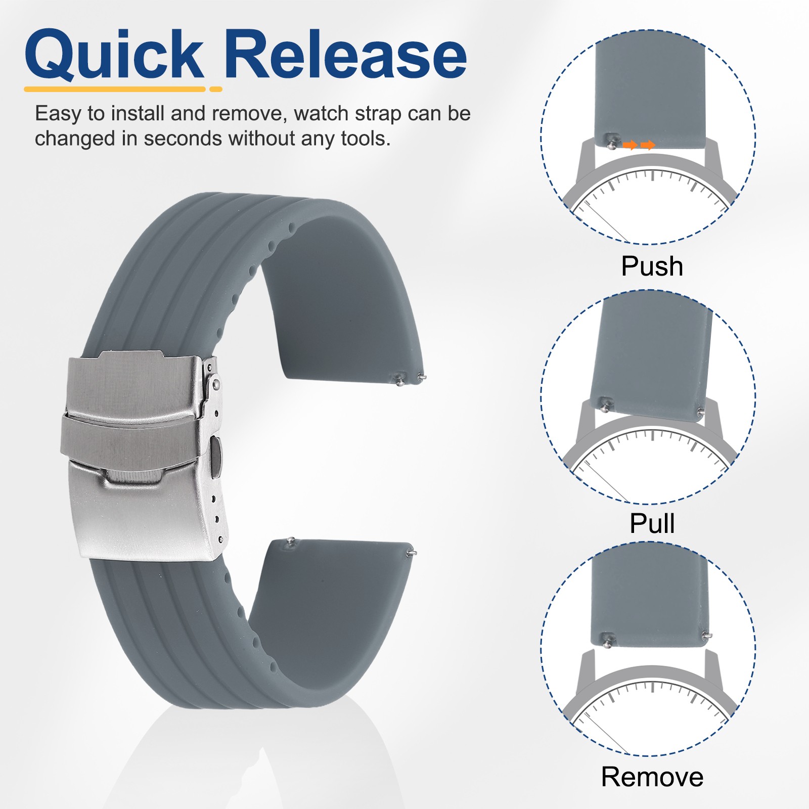 Silicone Watch Bands 24mm Soft Watch Bands with Silver Snap Buckle, Gray