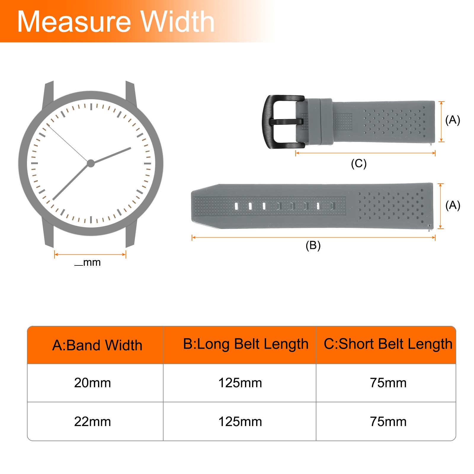 Silicone Watch Bands 22mm Soft Watch Bands with Black Buckle, Gray