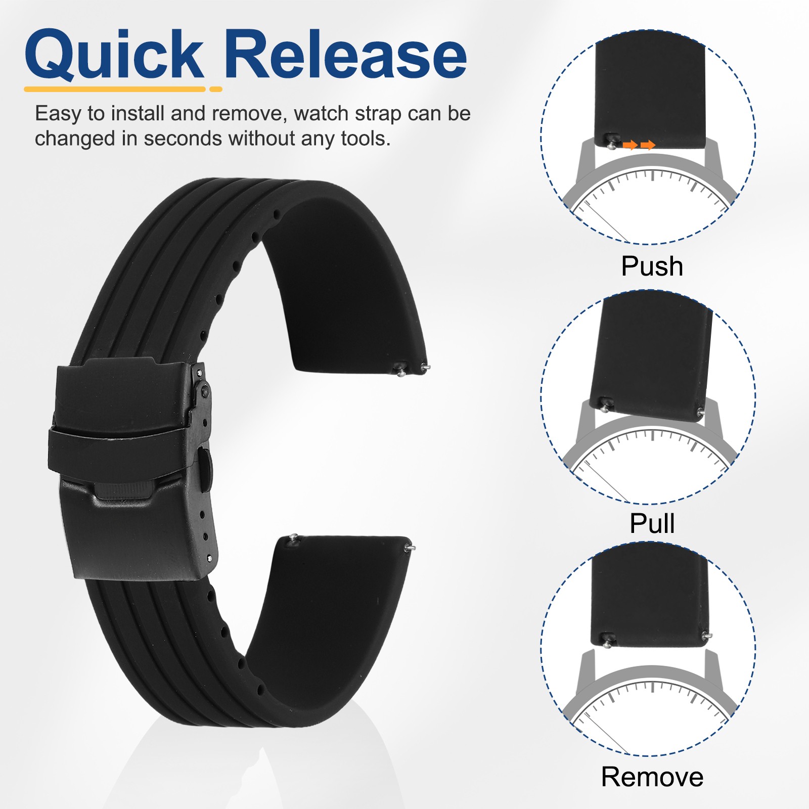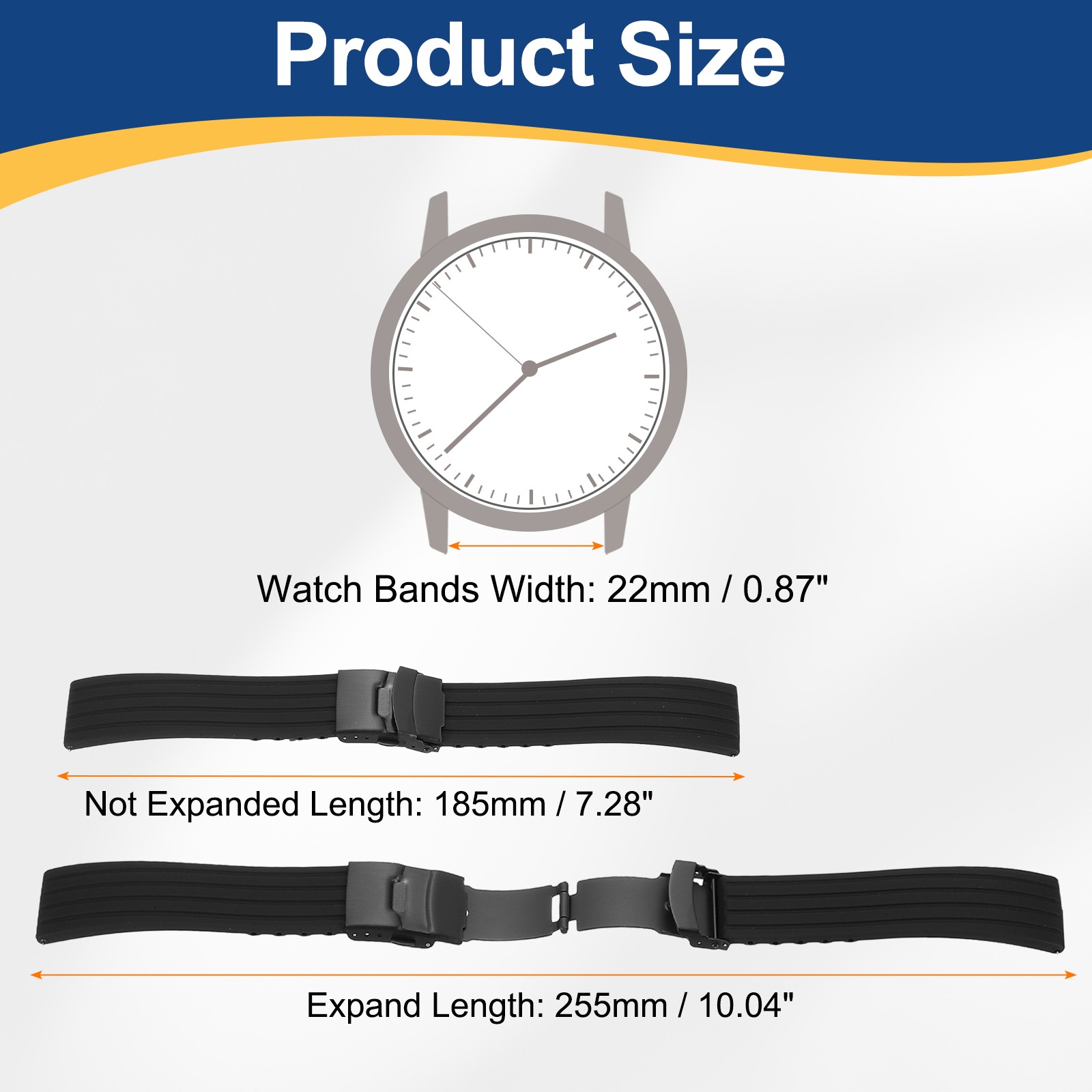 Silicone Watch Bands 22mm Soft Watch Bands with Black Snap Buckle, Black