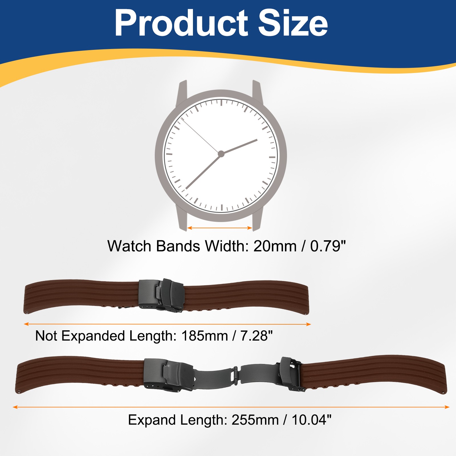 Silicone Watch Bands 20mm Soft Watch Bands with Black Snap Buckle, Brown