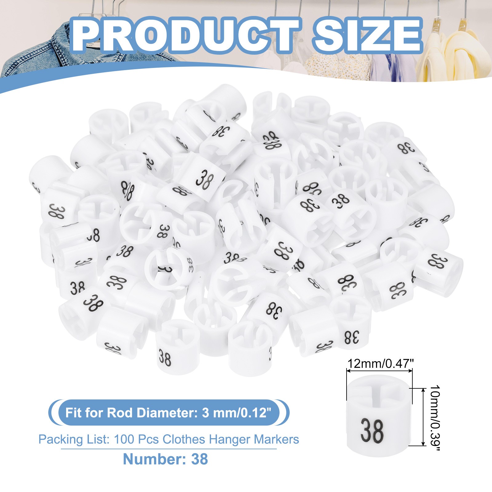 100 Pcs Clothes Hanger Markers, Number 38 Tag for Clothing Hangers, White