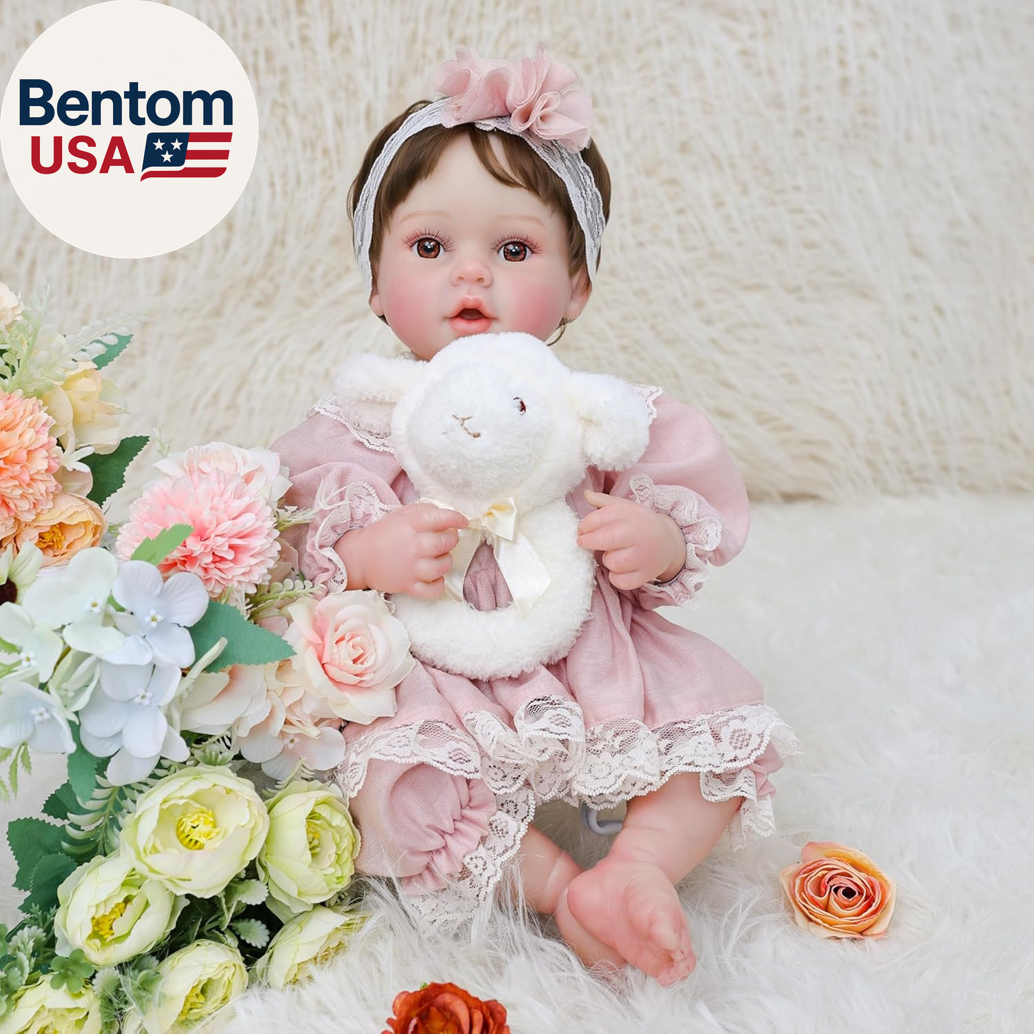 как выглядит 20Inch Large Realistic Reborn Baby Doll Hand-Rooted Hair Lifelike Baby Dolls wit фото