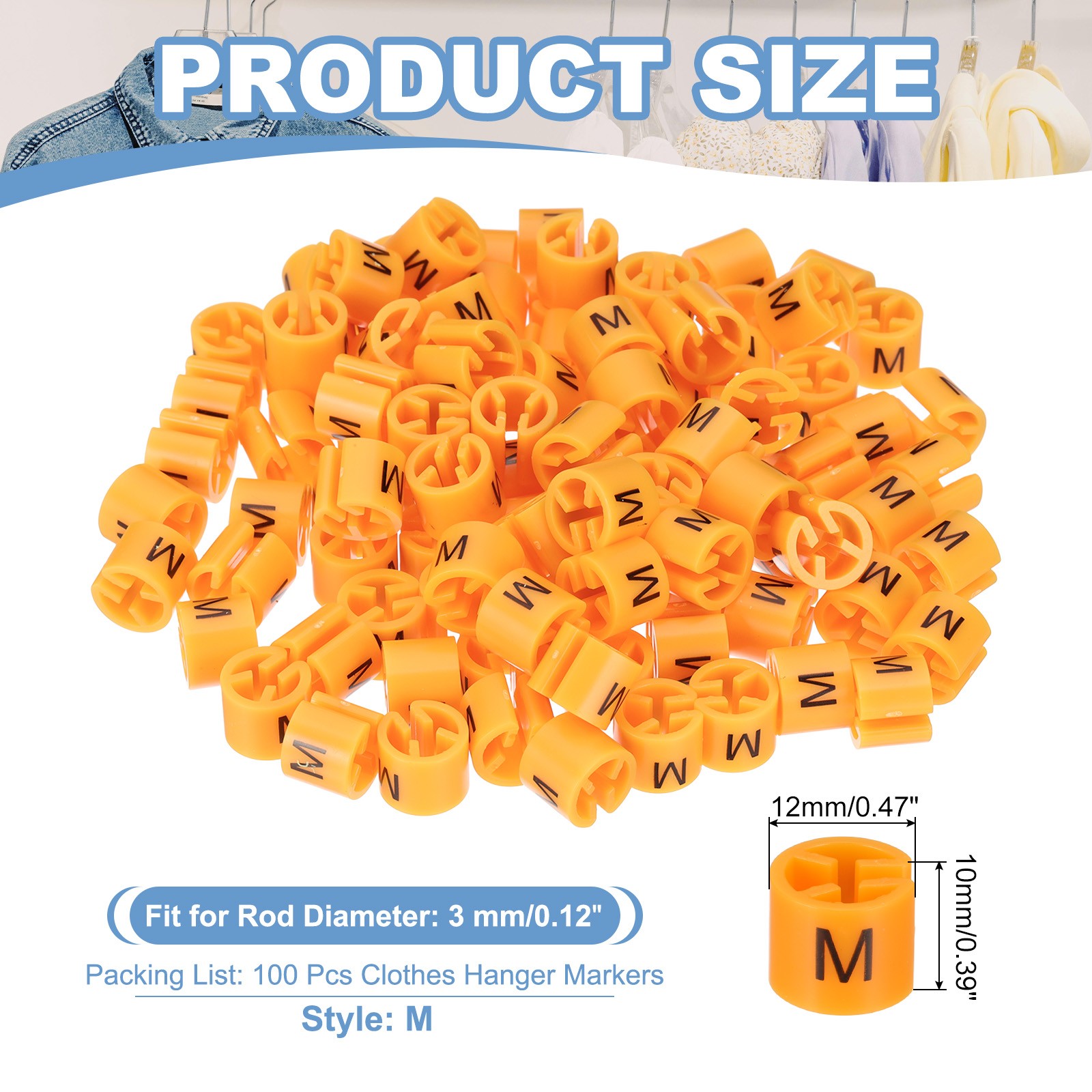100 Pcs Clothes Hanger Markers, m Size Tag Fit 3mm Rod for Garment Orange
