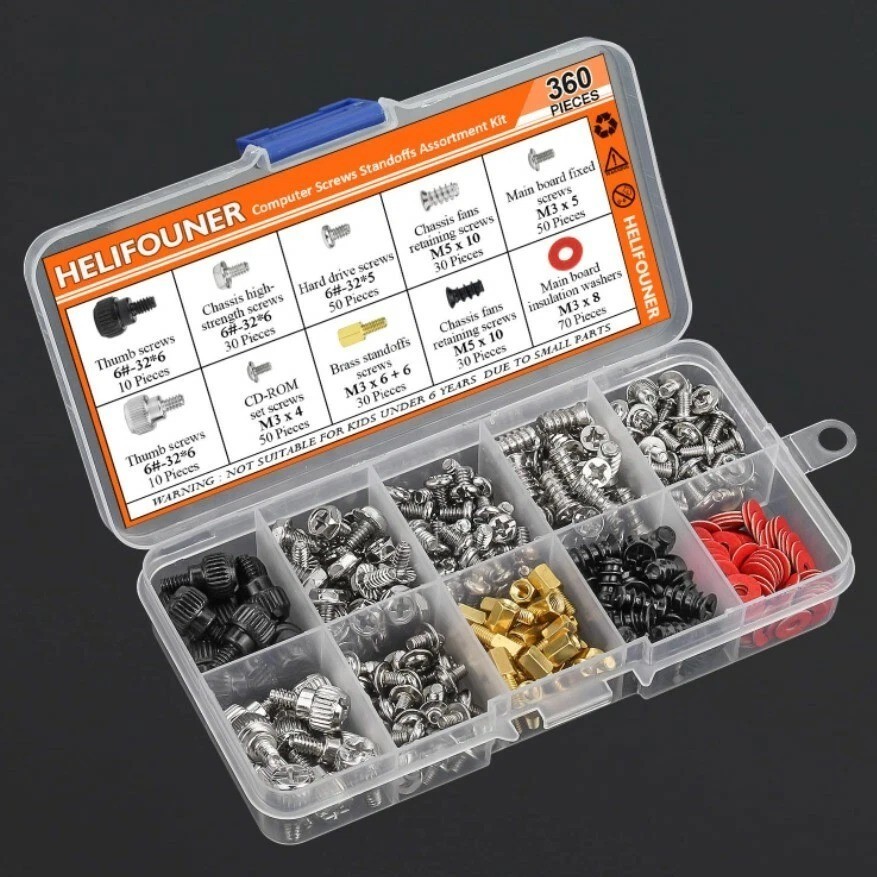 PC Computer Screws Standoffs Set Kit 360 Pieces Hard Drive Motherboard Case Fan