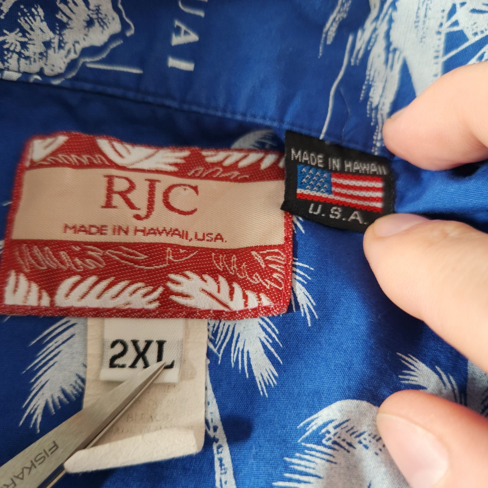 как выглядит VTG RJC Mens Hawaiian Button Shirt 2XL Blue Palm Tree Map Aloha Hawaii USA фото
