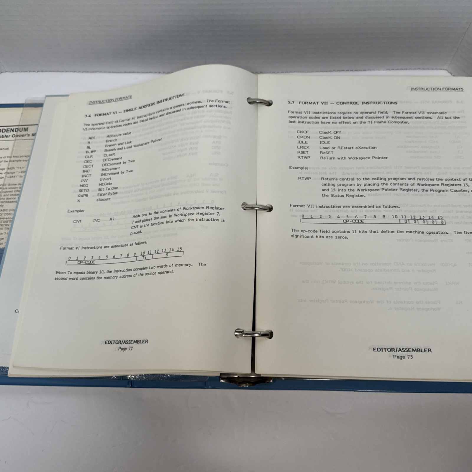 Texas Instruments Home Computer Manual TI-99/4A Editor/Assembler No Module/Discs
