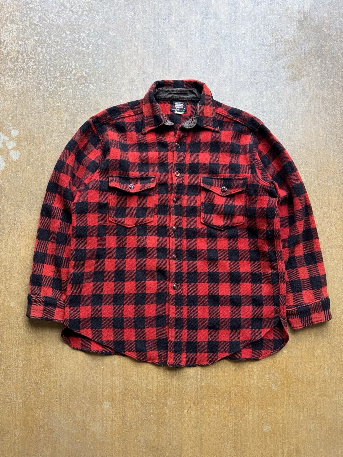 True Vintage 40s 50s Woolrich Red Plaid Checkered Wool Flannel Button Up Shirt L